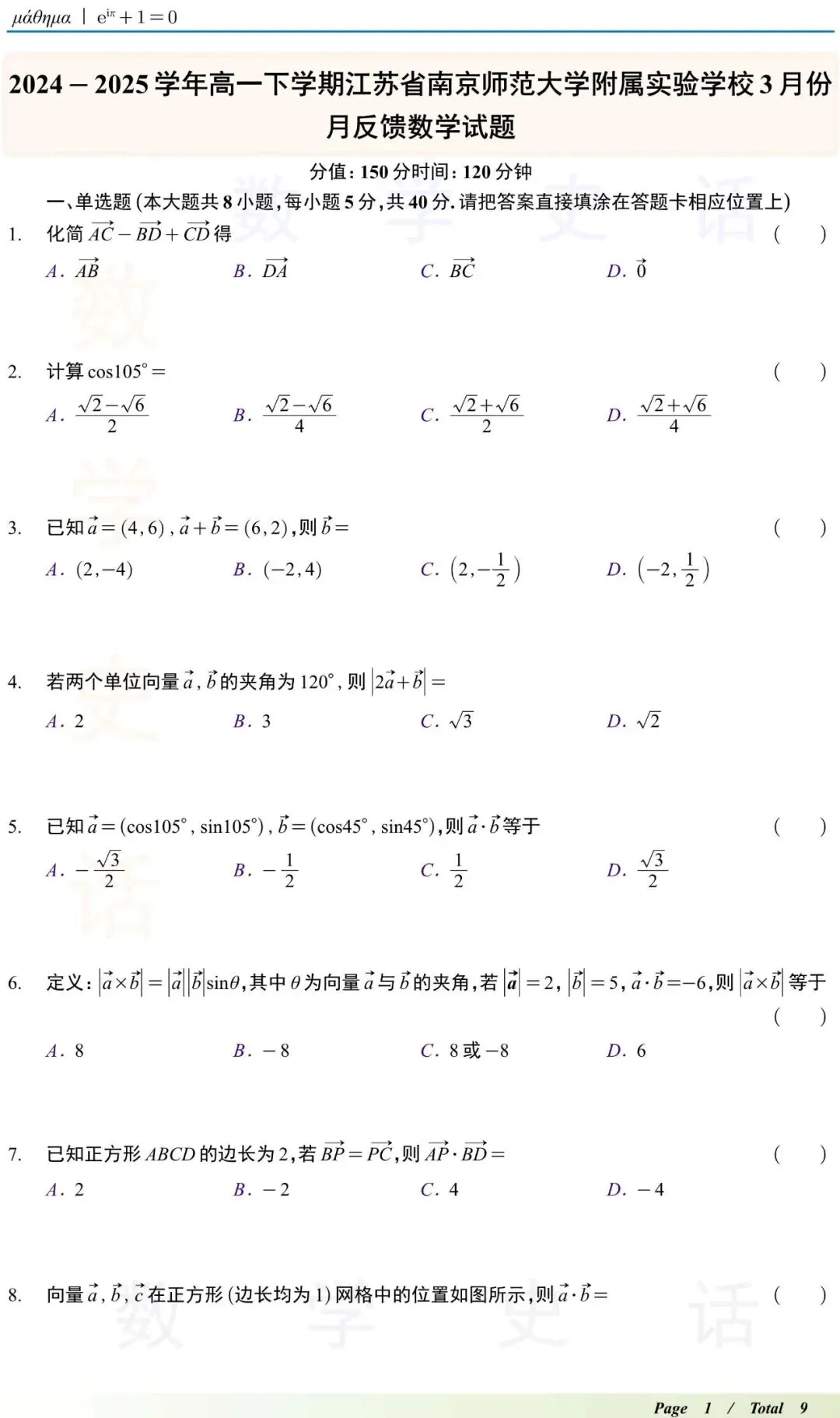 1.高一数学试卷(持续更新中)