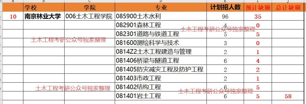 >【双一流】南京林业大学26年土木考研预计缺额统计