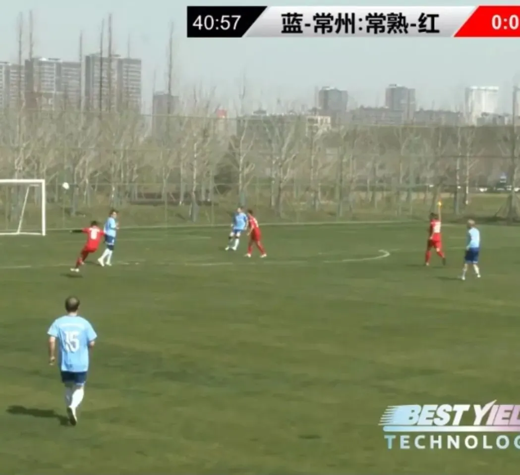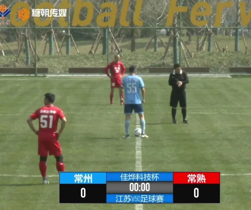 比赛伊始,双方迅速进入状态。第8分钟,常熟队55号霍老师边路起球传中,球速与落点俱佳,可惜被常州门将稳健摘下,化解险情。赛场攻防转换节奏明快,老将们跑位清晰、配合默契,完全看不出岁月痕迹。第19分钟、第23分钟,常熟队连续斩获前场任意球良机,5号吴老师主罚脚法精湛、弧度与力度俱佳,险些改写比分,引得场边阵阵喝彩。上半场双方你来我往、攻势不减,多次制造极具威胁的进攻,门前险情不断,只欠临门一脚,带着未分胜负的悬念,半场战罢互交白卷。