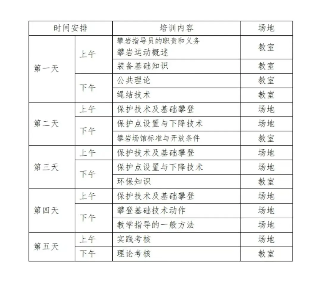 5. 具体考核标准详见《攀岩指导员技能考核实施细则》。