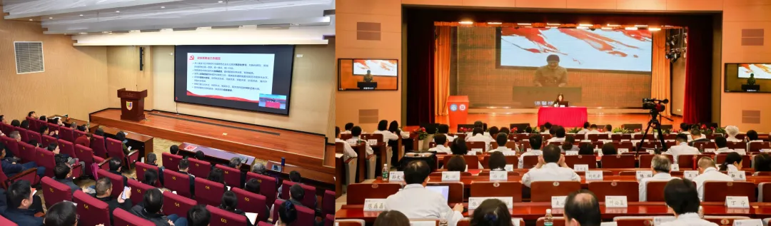 刘云委员以《同心同德共绘宏伟蓝图 实干奋斗共创时代伟业》为题,从全国政协十四届四次会议概况、习近平总书记参加江苏代表团审议时的重要讲话精神、习近平总书记在政协联组会上的重要讲话精神、个人履职尽责情况及参会学习感悟等方面,进行了全面而深入的报告。刘云委员表示,全国政协十四届四次会议是一次高举旗帜、凝心聚力、求实奋进、风清气正的大会,要坚持以习近平总书记重要讲话精神为指引,以科技创新为笔,以民生福祉为墨,积极发挥建言资政作用,努力书写出无愧于时代、无愧于人民的答卷。韩峰代表以《蓝图已绘就,奋进正当时》为题,重点传达了政府工作报告主要精神、习近平总书记参加江苏代表团审议时的重要讲话精神,并就江苏代表团审议政府工作报告、“十五五”规划纲要、年度计划、年度预算等四个决议草案及“两高”工作报告情况进行了介绍,同时结合自身履职经历分享了参会体会。他强调,“十五五”开局之年的全国两会,具有格外不同的意义,希望全体师生牢记使命、勇挑重担,立足岗位思考,结合学校实际谋划,以高水平科技自立自强为引领,深耕医学创新与成果转化,为健康中国建设做出新的更大贡献。徐珊副书记在总结讲话中表示,学习宣传贯彻全国两会精神,是当前和今后一个时期的重大政治任务。希望全校上下切实把思想和行动统一到习近平总书记重要讲话精神上来,结合学校和本单位工作实际,在研究新情况、解决新问题上下功夫、出经验,科学谋划学校“十五五”时期改革发展各项工作,扎实推进2026年重点工作,为教育强国、强省建设开好局、起好步贡献更大的南医力量。全体在校校领导、党委常委,全体中层干部、党支部书记,全体科职干部,各民主党派、无党派人士代表,全体思想政治理论课教师、辅导员,苏锡常泰淮副院长以上干部参加了报告会。报告会在江宁校区德馨楼D101报告厅、第一附属医院、第二附属医院、附属口腔医院、逸夫医院、第四附属医院、康达学院、常州校区、苏锡常泰淮分会场同步进行视频直播。