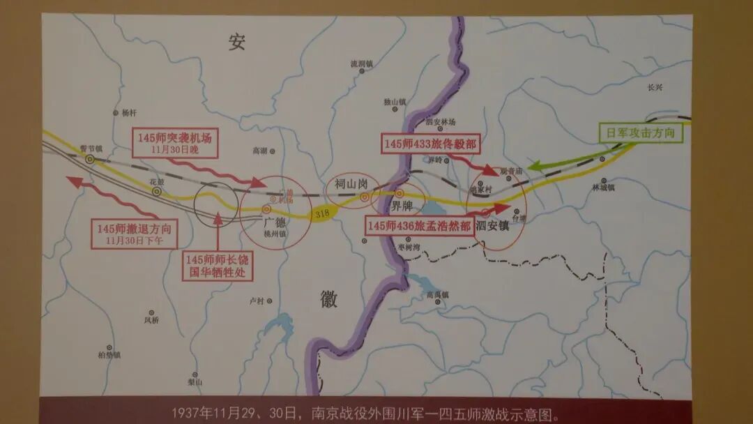 尽管广德战役最终以失利告终,但一四五师的顽强抵抗,为南京保卫战的布防争取了宝贵的时间。据统计,川军在广德、泗安一线阻击日军4昼夜,迟滞了日军进攻南京的速度,使南京守军得以在11月26日至12月1日期间,完成了外围防线的部署:第74军、第88师、第87师等中央军主力,得以在淳化镇、汤山、栖霞山等核心阵地构筑工事,为南京保卫战的后续战斗奠定了基础。