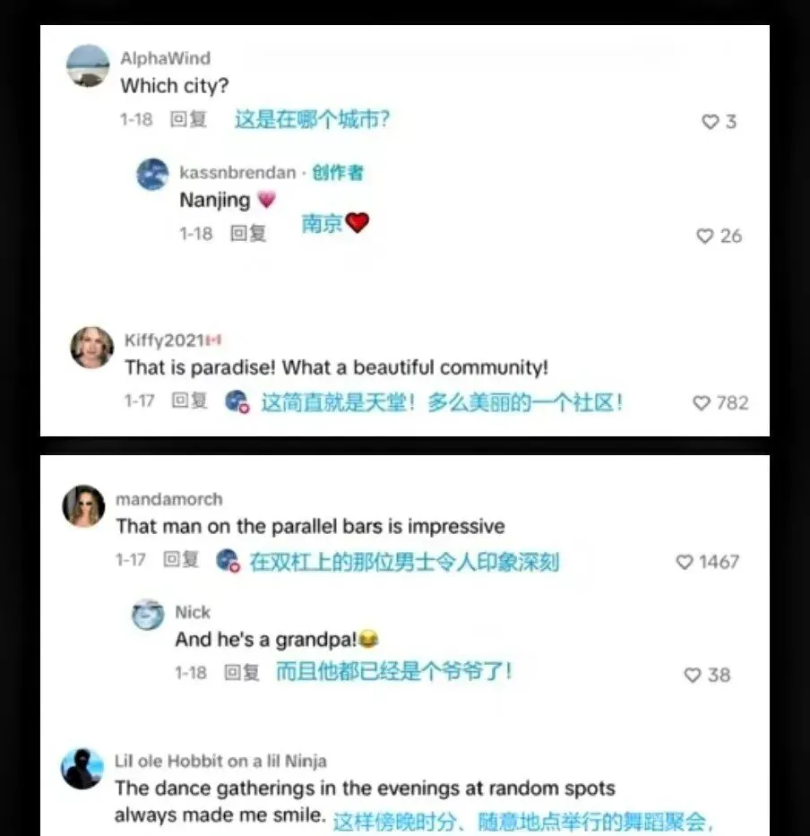 真正让视频“火遍全球”的,是那些看似微不足道的细节:大爷在双杠上的绝活,阿姨们广场舞的韵律,皮划艇在湖面上的点缀。