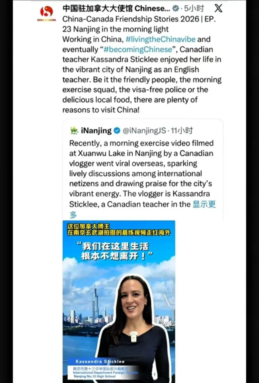 起初,一个名叫卡斯的加拿大外教,在南京玄武湖晨跑时,被眼前生机勃勃的景象深深打动。