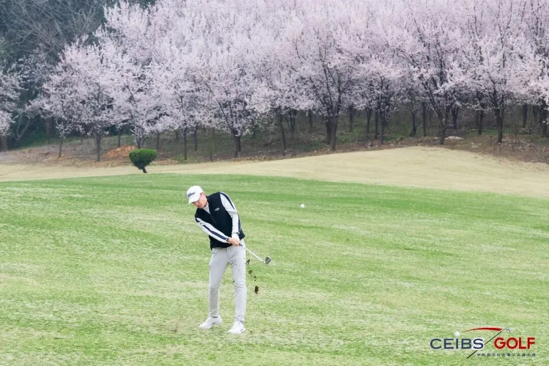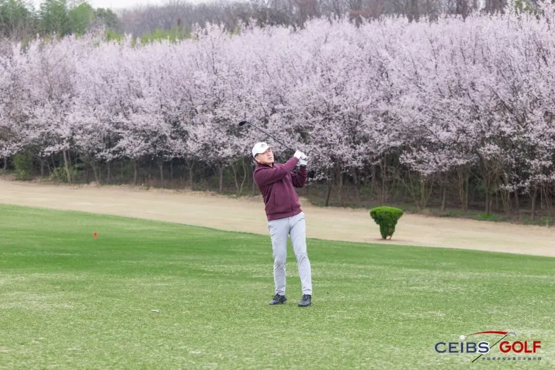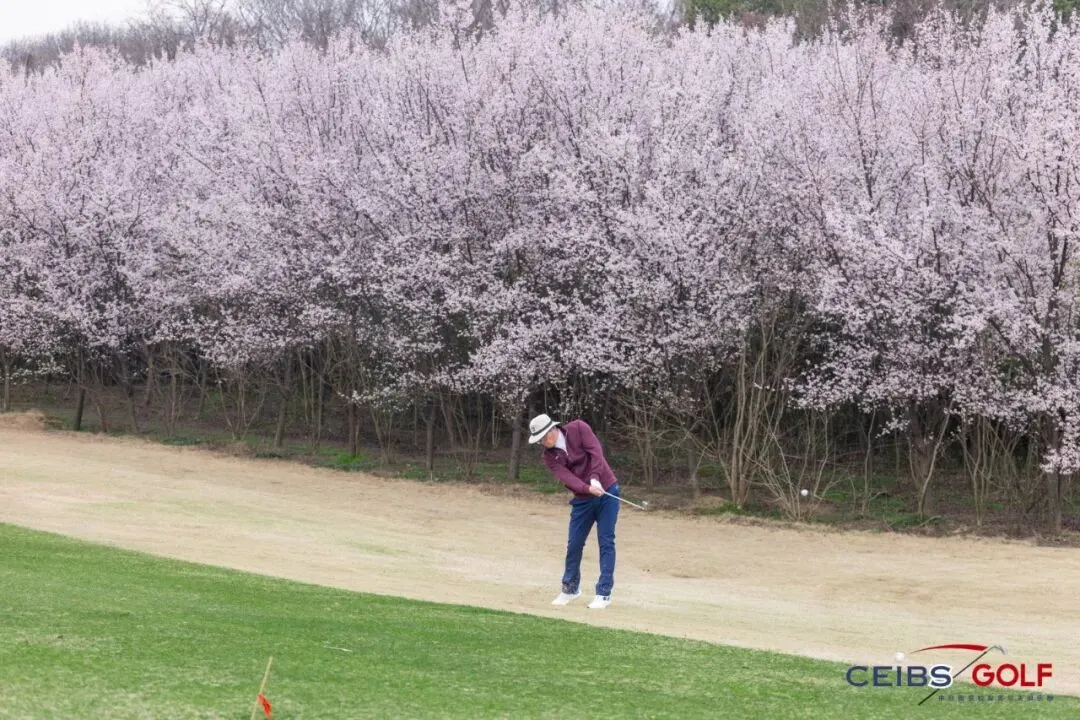 南京太阳岛高尔夫球场的湖光山色与春日绿茵交相辉映,恰逢樱花盛放,粉白相间的花瓣点缀在球道两侧,微风轻拂,花瓣随风飘落,铺就出一条浪漫的春日小径,风景秀丽如画。校友们在错落有致的球道间从容前行,专注于每一次挥杆、每一次推杆、每一次判断。无论是精准有力的开球,还是细腻沉稳的果岭推杆,亦或是从容应对沙坑困境的灵活调整,大家都全力以赴、从容发挥。