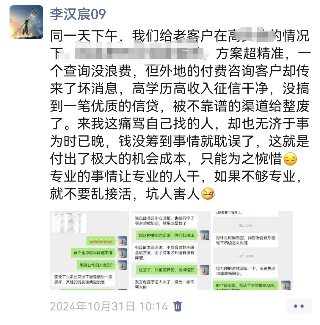 我以前就遇到过,外地的一客户,资质很好,还付费咨询了,但没去找我推荐的渠道,而是找了当地的一个大的公司,说注册资本高,装修好,应该实力强,但最后做的并发,七八个查询,没搞出点像样的额度,事情就这样被耽误了,我们也只能惋惜。