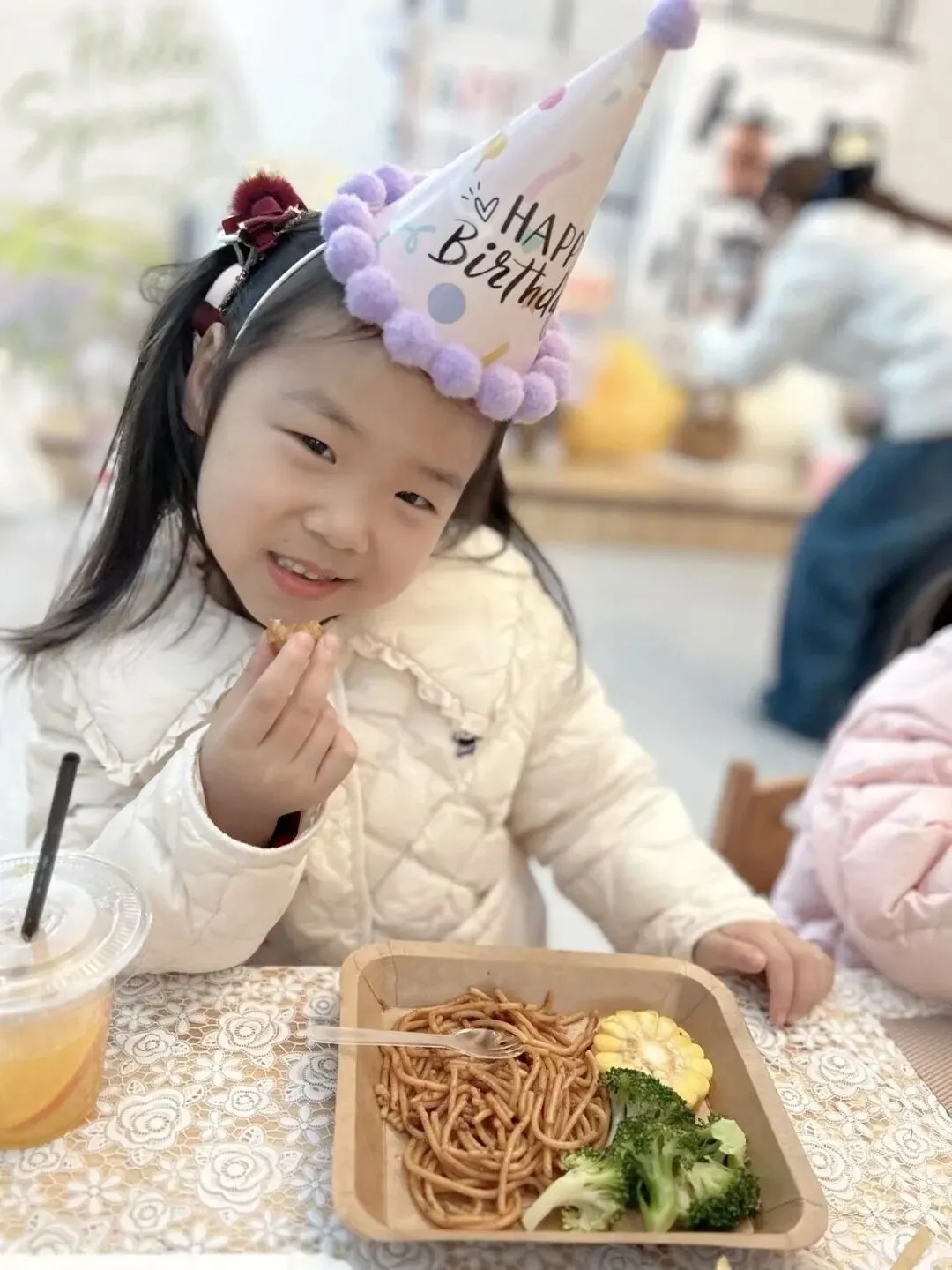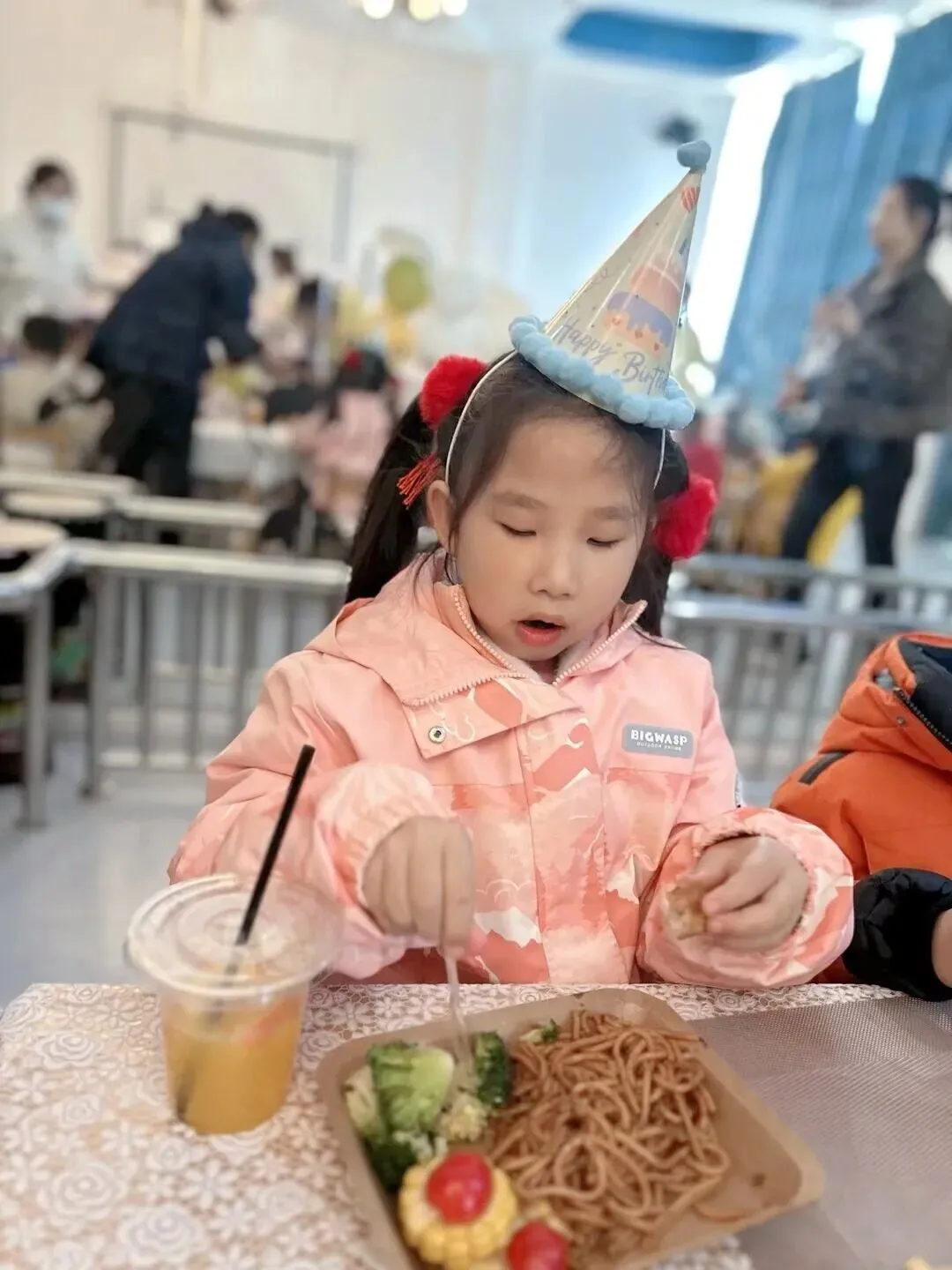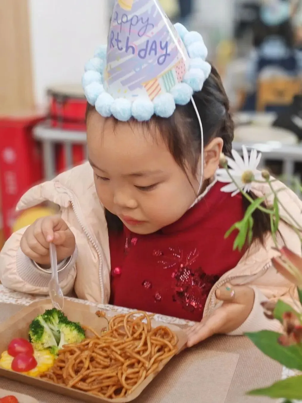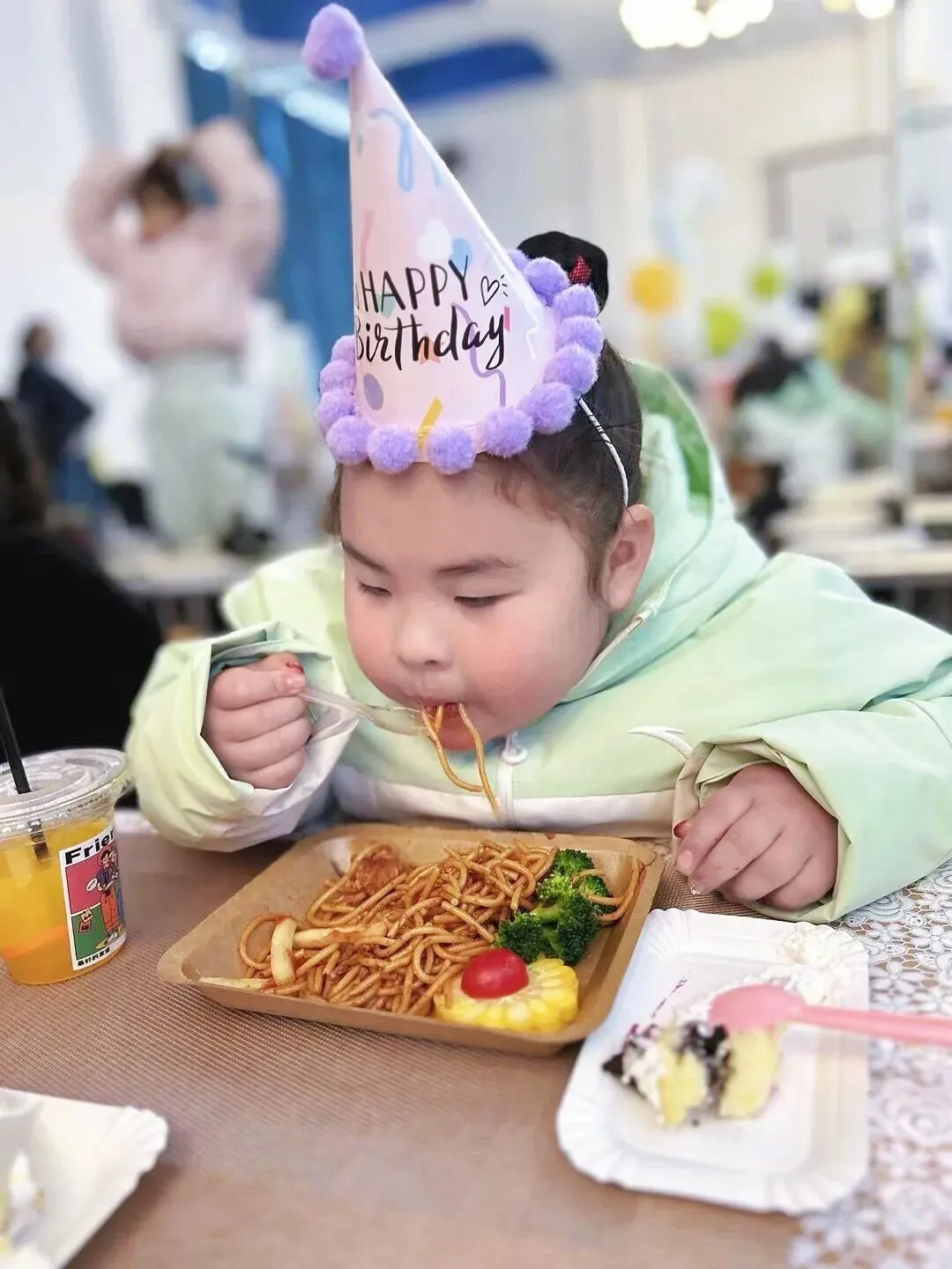 最期待的时刻来啦——美食和生日蛋糕已经就位!宝贝们都在慢慢吃、细细尝,甜甜的滋味在舌尖绽放,生日的幸福吃到了心里~