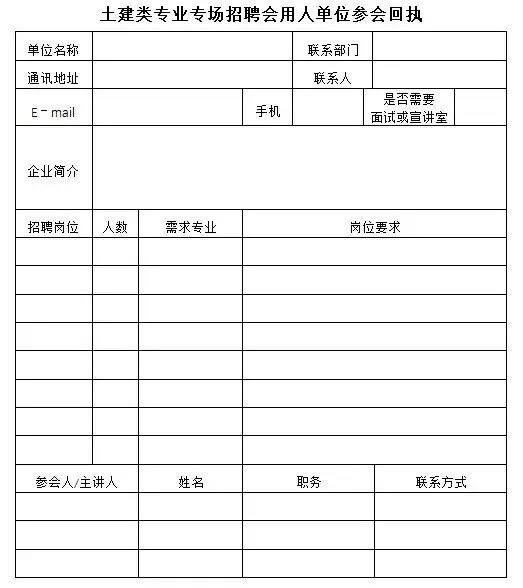 附件2.土建类专场招聘会用人单位参会回执