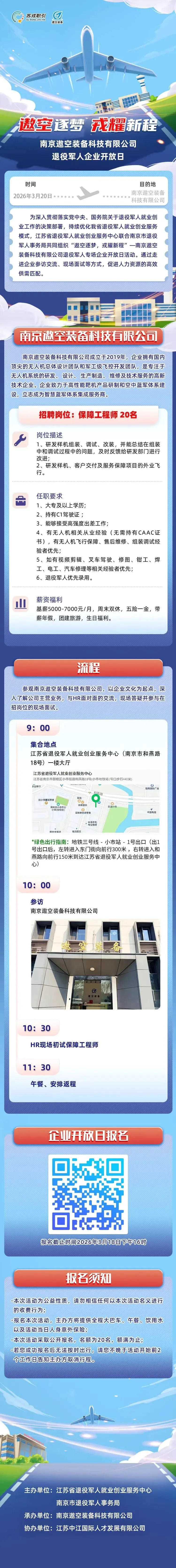 >遨空逐梦·戎耀新程!南京遨空装备科技有限公司退役军人企业开放日,报名开启!