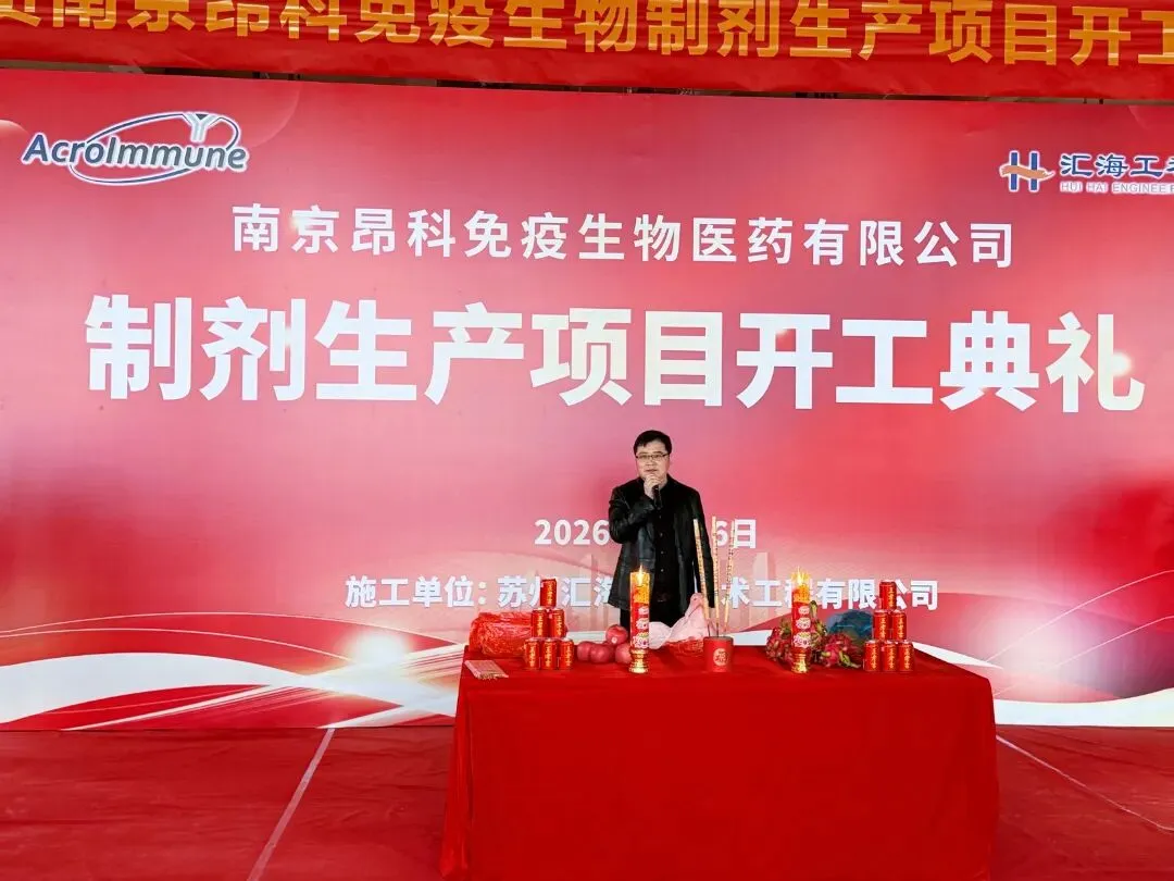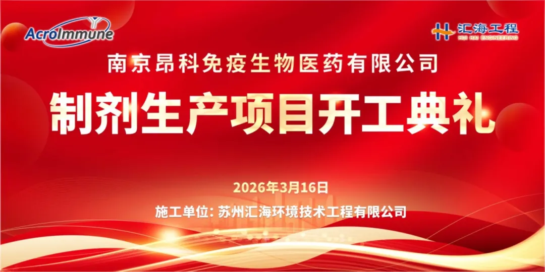 2026年3月16日上午,南京昂科免疫生物制剂生产项目开工仪式圆满举行!作为施工单位,苏州汇海环境技术工程有限公司携专业团队出席,与建设单位及各界同仁共同见证重要时刻,共启生物医药产业高质量发展新征程!