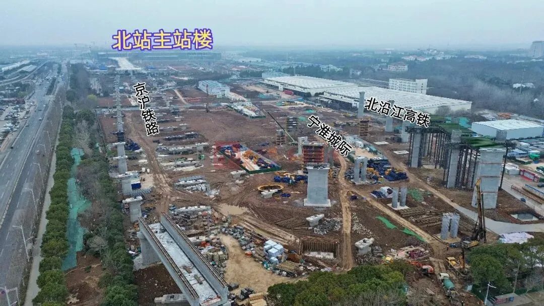 近日,南京北站项目建设全面提速,全面转入地面主体结构施工阶段。