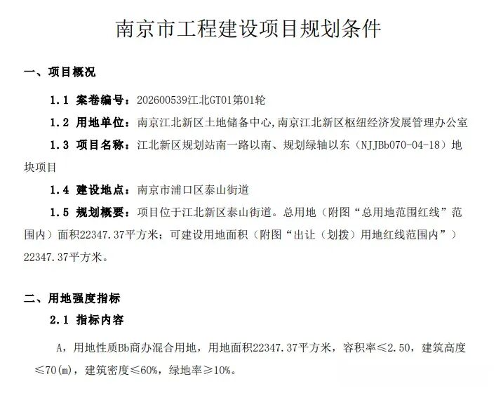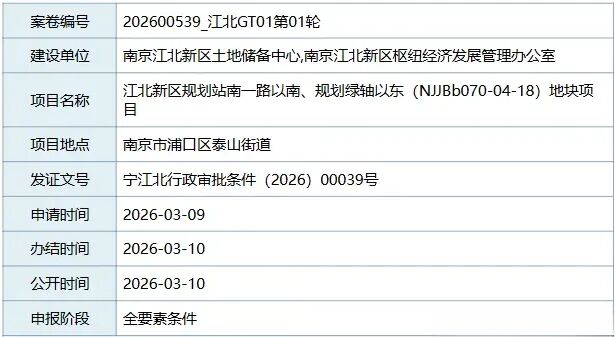 江北新区规划站南一路以南、规划绿轴以东(NJJBb070-04-18)地块项目已通过全要素申报。