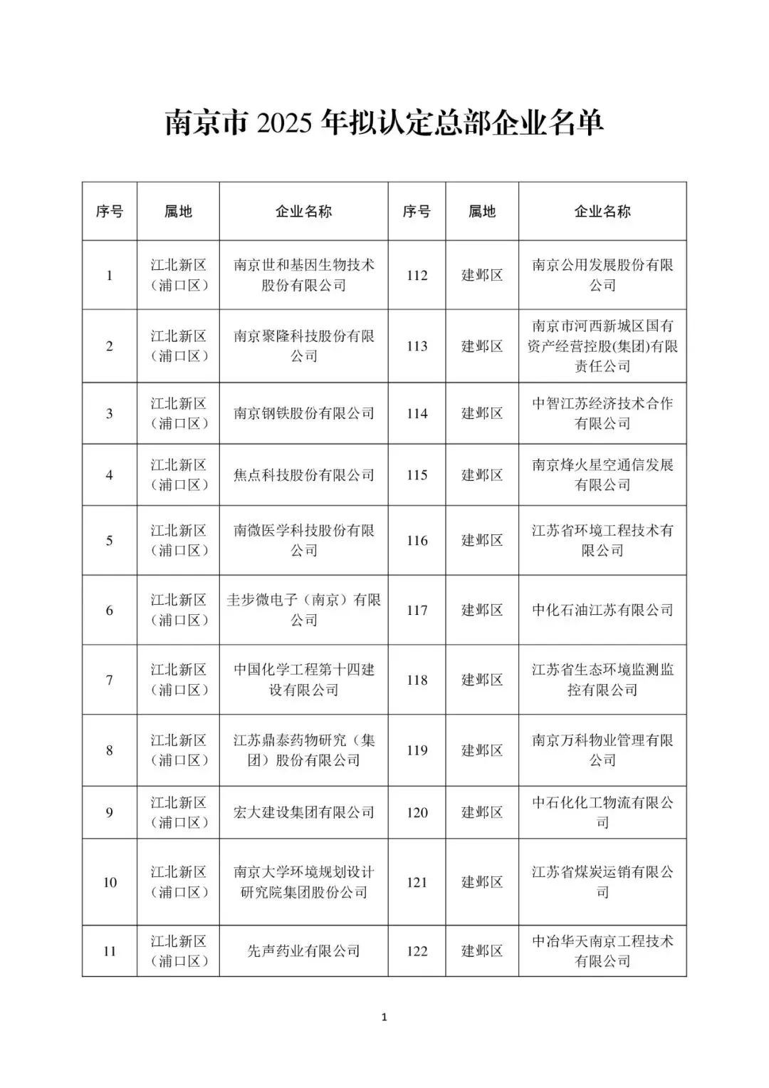 南京市2025年拟认定总部企业公示公告