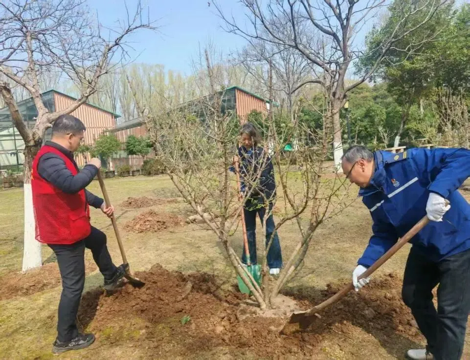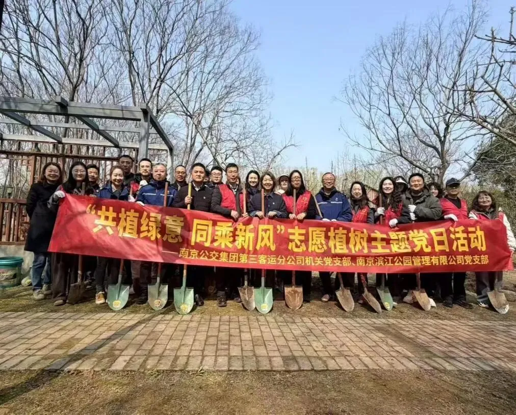 3月12日,在第48个植树节到来之际,南京滨江公园管理有限公司党支部与南京公交集团第三客运分公司机关党支部的党员们齐聚南京绿博园,联合开展了一场以“共植绿意,同乘新风”为主题的志愿植树党日活动,为绿博园即将打造的“绣球花园”增添色彩。