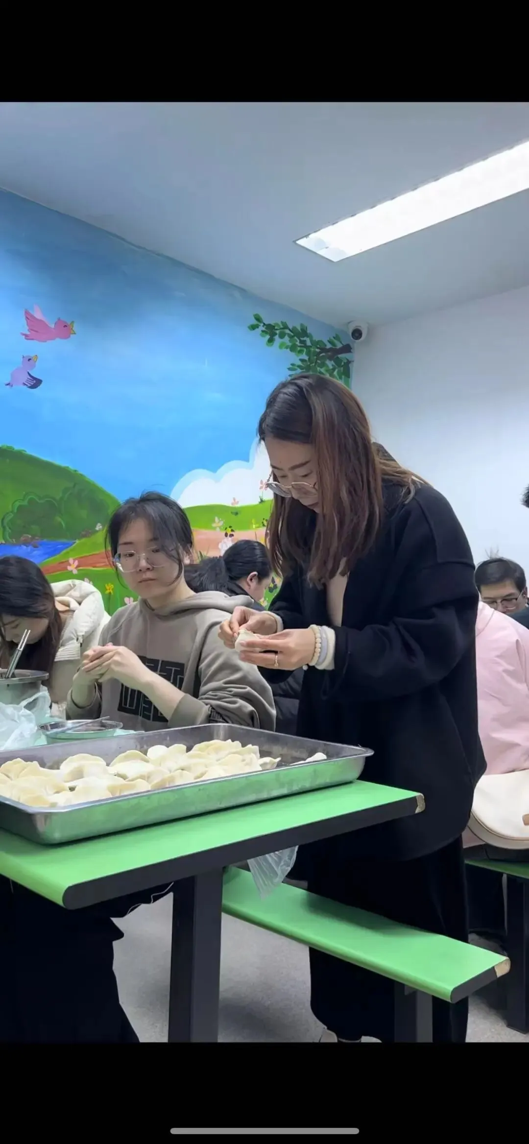 大家围坐在一起,动手包起水饺大手牵小手,默契又温馨面皮包裹着馅料更包裹着关爱、温暖与期盼
