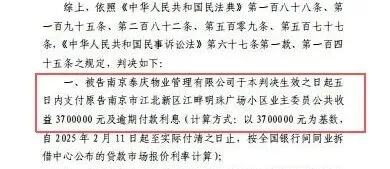 最近,法院正式宣判——南京泰庆物业管理有限公司需向全体江畔明珠小区业主返还370万公共收益。