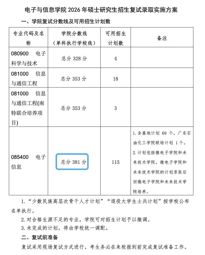 上流985院复试线才276分0854计算机/电子信息