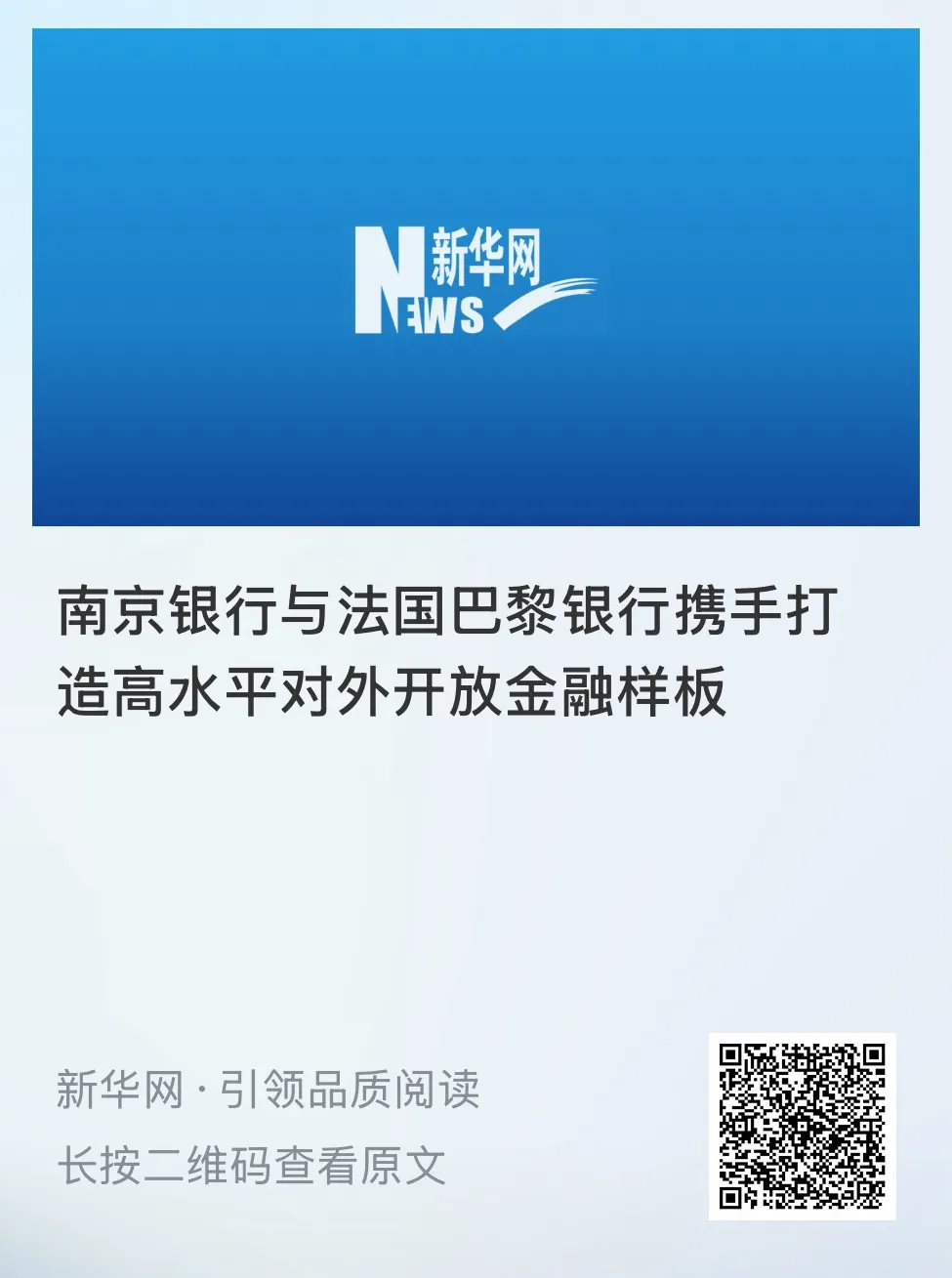 此次获奖的新闻作品聚焦南京银行与法国巴黎银行二十年战略合作特色实践,生动展现双方“互信共赢、融合发展”的合作历程,以鲜活案例立体呈现合作以来的丰硕成果,彰显出南京银行积极服务金融强国建设、引领高水平对外开放的责任担当,也传递出中国金融市场持续对外开放的积极信号,为推动中国金融行业高水平对外开放提供了“南银法巴样板”。该篇报道推出后,得到了新华网、金融时报、中国银行保险报等主流媒体的广泛关注。
