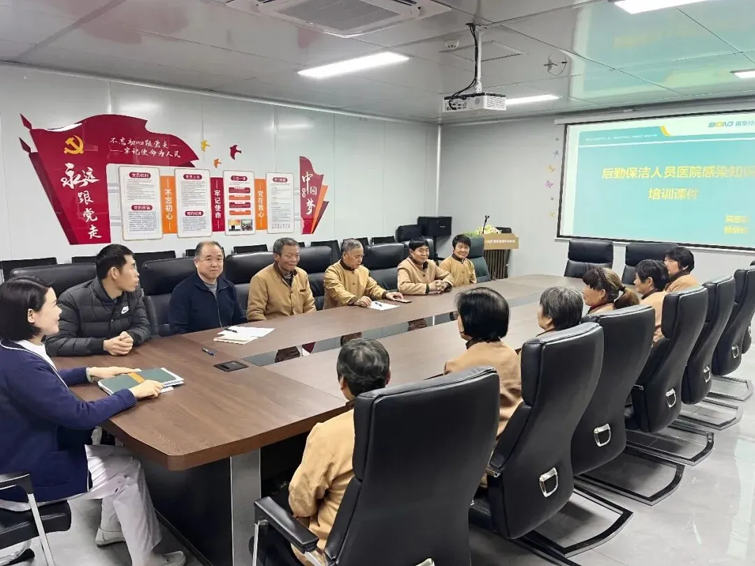 院感科杨主任、总务部魏主任、后勤保洁部负责人及全体在岗保洁人员共同参会,筑牢医院感染控制的“第一道防线”。