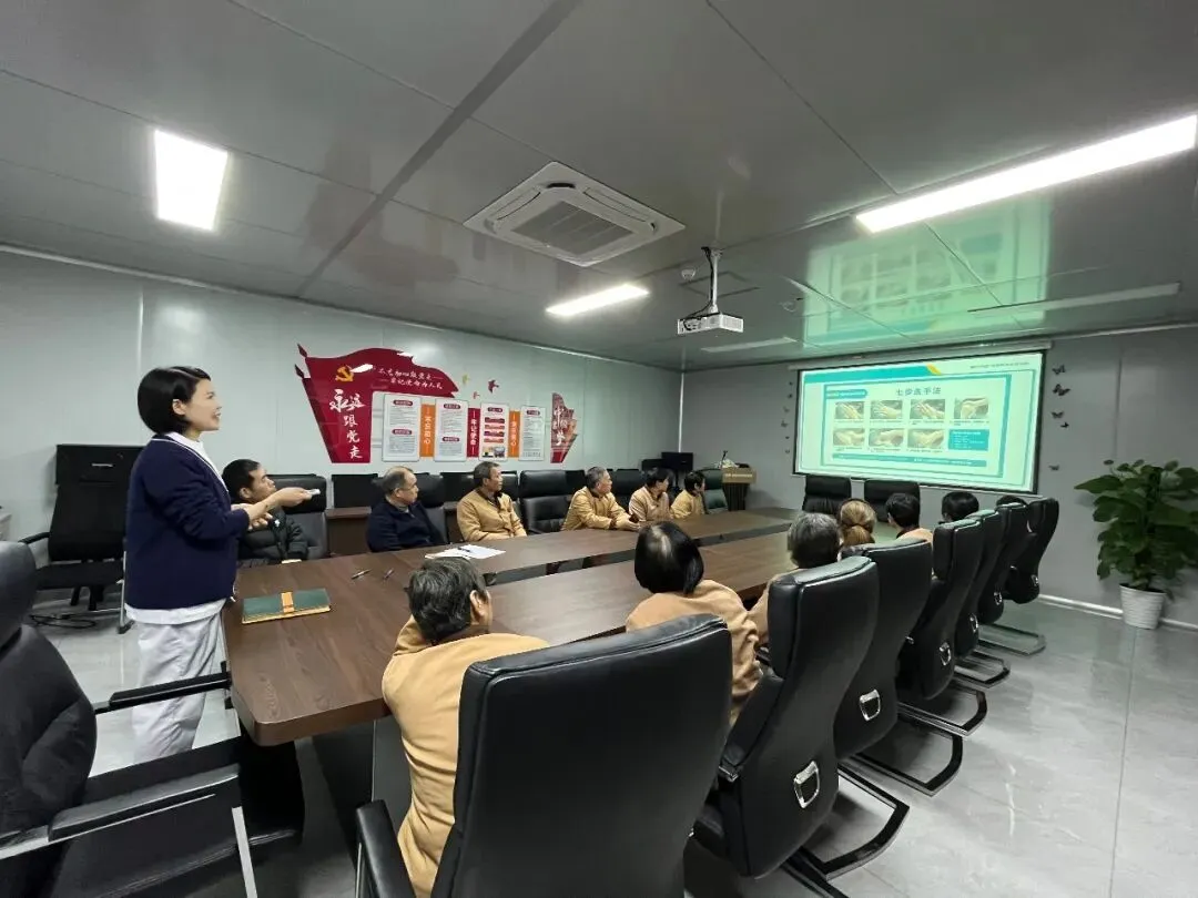 为了确保培训效果落地生根,杨主任现场带领保洁人员进行了“七步洗手法”的标准示范,并逐一进行了实操考核,确保每一位保洁人员都能熟练掌握、动作规范。