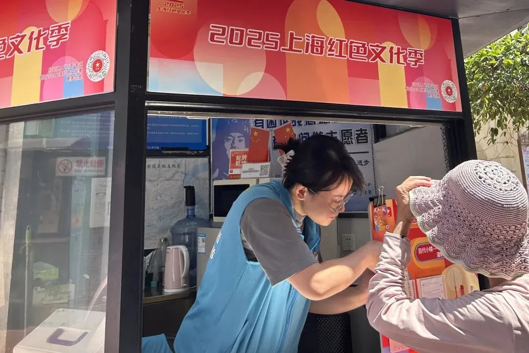 南京路热浪滚滚,志愿者们的周到服务为往来游客送去阵阵清凉。除了提供免费饮用水、道路指引等基础服务外,志愿服务站点还特别设置了多项便民措施:针线包为衣物突发破损的游客解燃眉之急;手机免费充电站让“电量焦虑”的游客重获安全感;急救药箱常备创可贴、清凉油等应急药品,还增配藿香正气水、冰贴等防暑物资。