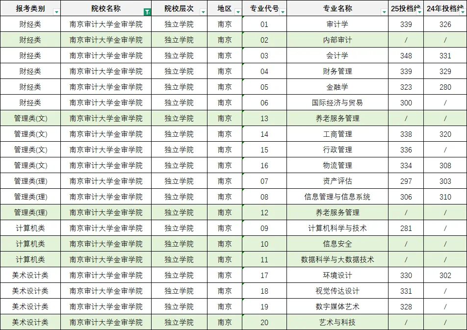 管理类专业文理兼收,南京审计大学金审学院专转本专业分数线差异明显。管理类(文)的工商管理 338 分、行政管理 336 分、物流管理 334 分,均较 24 年上涨;管理类(理)的信息管理与信息系统 306 分、资产评估 297 分,贴合应用型人才培养需求,为分数适中的考生提供了稳妥选择。