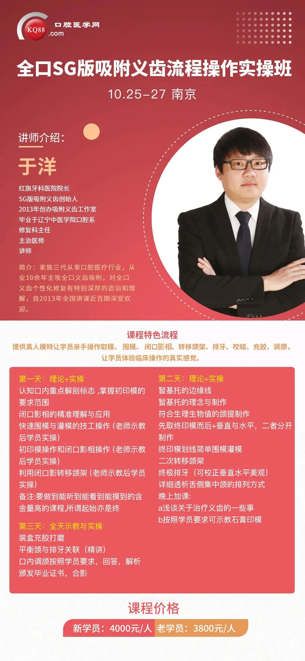 【10月南京】于洋-全口SG版吸附义齿流程操作实操班课程表