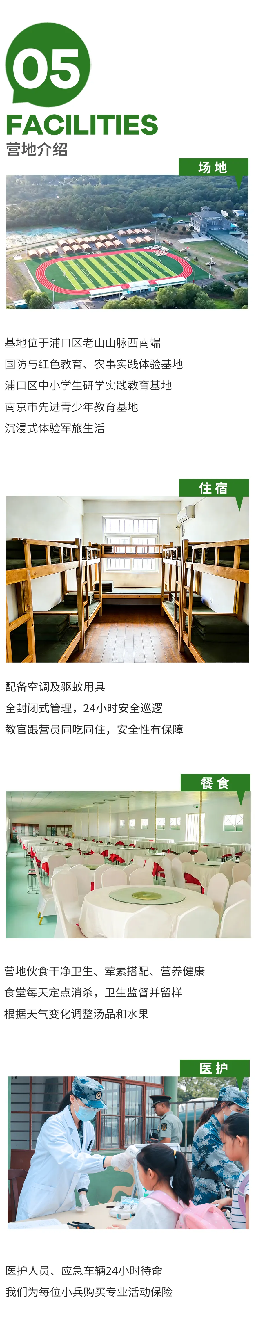上午:营地报到、物资领取、教官见面、分配宿舍、熟悉营地环境,学习用餐纪律。