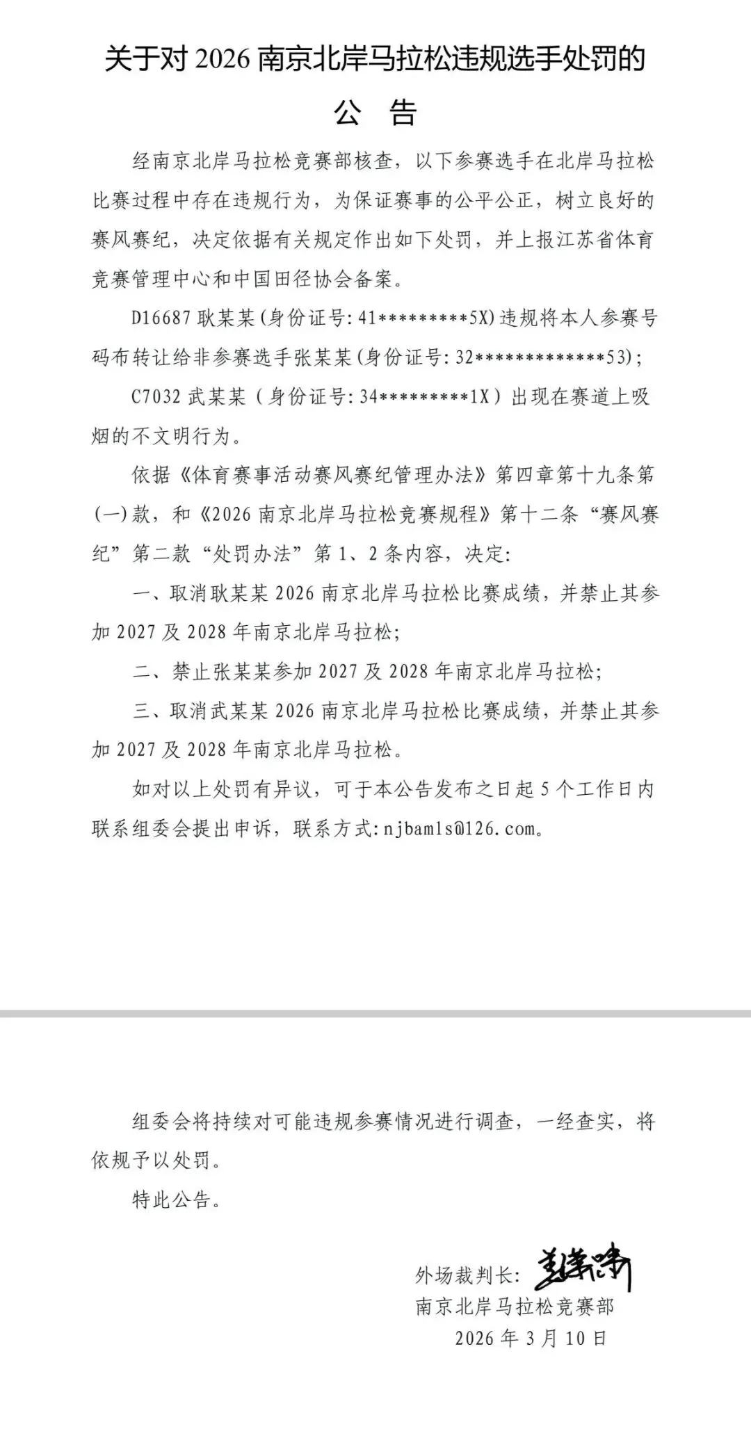 最近马拉松赛事有两份处罚公告比较火