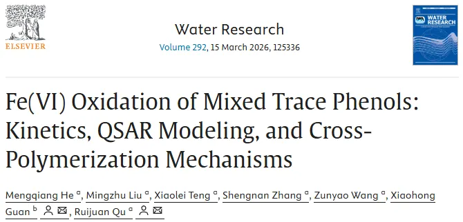 近期,环境科学顶刊Water Research(影响因子=12.4,中科院一区top,自然指数期刊)发表题为“Fe(VI) Oxidation of Mixed Trace Phenols: Kinetics, QSAR Modeling, and Cross-Polymerization Mechanisms”的论文,通过多维度分析揭示复杂体系中污染物转化新规律。