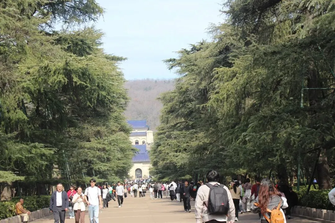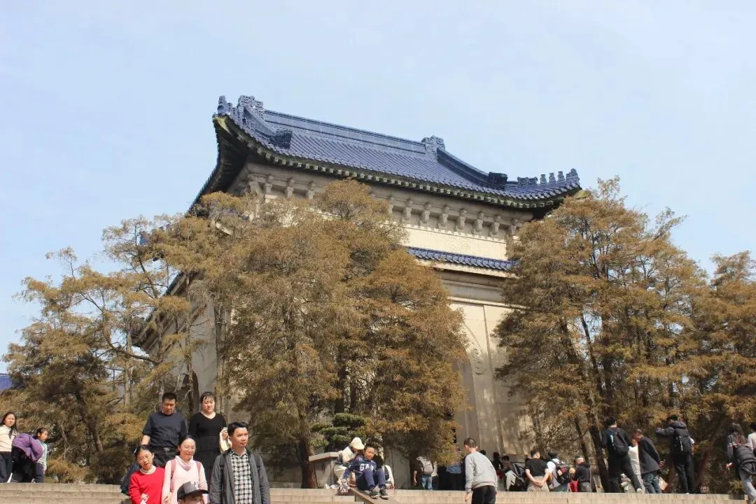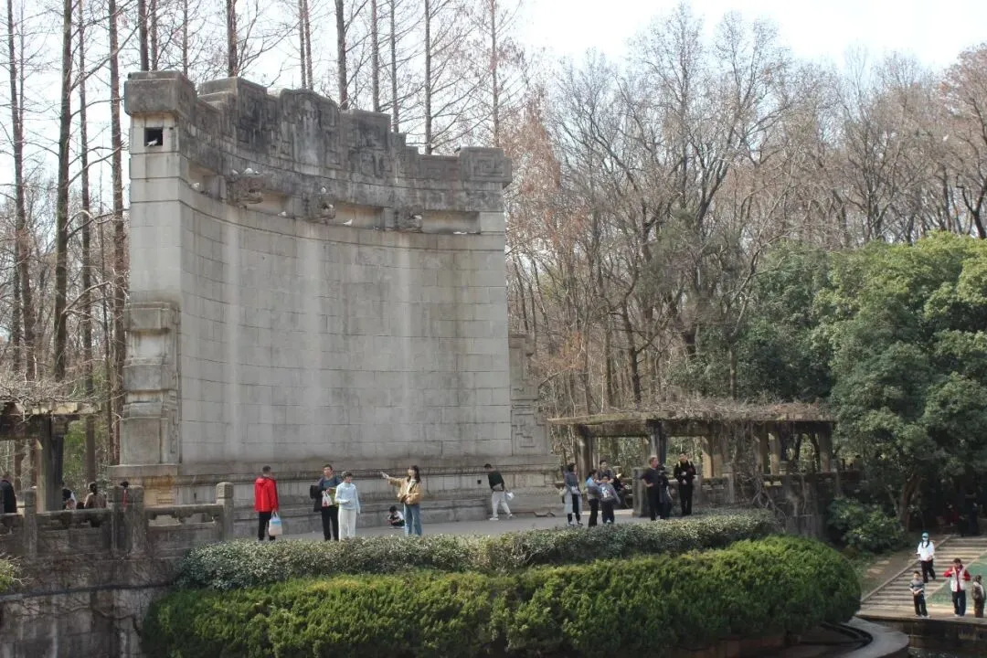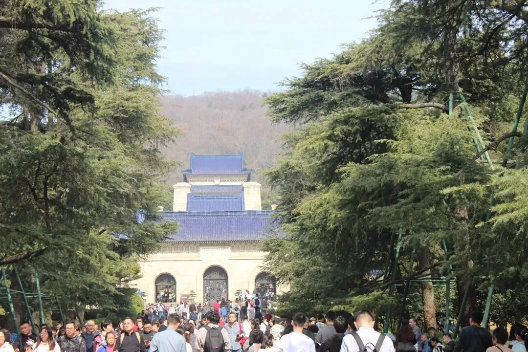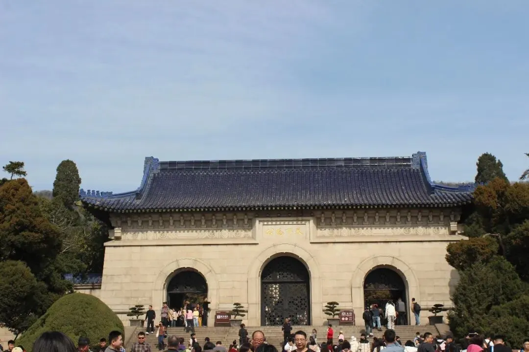 从明孝陵出来,沿山间步道漫步约两公里,就到了中山陵。这里是整个钟山风景区人气最火的地方,人头攒动,熙熙攘攘。中山陵位于紫金山南麓,始建于民国十五年(1926年),是孙中山先生的陵寝及其附属纪念建筑群。中山陵是中国首批受西方现代建筑思想影响而建成的礼制建筑群,是重要的公共建筑,具有时代特征性、文化经典性、丰厚内涵性、世界意义性。1961年3月4日,中山陵被国务院公布为第一批全国重点文物保护单位 。2016年9月29日,中山陵被中国文物学会、中国建筑学会联合公布为首批中国20世纪建筑遗产。陵园坐北朝南,由建筑师吕彦直设计,占地面积31平方千米,建筑平面呈警钟形,取唤醒民众之意。陵寝建筑以中轴对称的方式分布,中轴线由南向北逐渐升高,整个建筑群依山势层层上升。以牌坊、墓道、陵门、碑亭、祭堂、墓室组成的景观序列分布在陵区中轴线上,由南向北,每个景观序列之间的平均距离为700米,高差70米,有392级台阶,平台10个。中山陵正面为四柱三间的大牌坊,洁净的花岗岩,明亮的琉璃瓦,上刻有孙中山先生手书“博爱”两个金色大字。牌坊之后是长长的陵道,两旁是高耸的雪松,然后便是陵门,依然是青色琉璃瓦顶的格调,门额上镶嵌着孙中山手迹“天下为公”四个大字。穿过陵门,有一巨大的方形石碑,刻着“中华民国十八年六月一日,中国国民党葬总理孙先生于此”的鎏金大字,碑后无字,意为先生丰功伟绩无以言表。祭堂处在山巅高台,是中山陵的主体建筑,风格中西结合,祭堂南面三座拱门为镂花紫铜双扉,门额上分别刻有:民族、民权、民生。中门上嵌有孙中山手书“天地正气”,堂中有孙中山的大理石坐像。高处俯瞰,整个陵园在青山绿树环抱之中,虽游人如织,亦不改宁静肃穆。中山陵下方的山坳中,是中山陵音乐台。这是女儿这趟南京之旅指名要来打卡的景点之一。音乐台由著名建筑师关颂声、杨廷宝设计,于1932年秋动工兴建,1933年8月落成,主要用作纪念孙中山先生仪式时的音乐表演及集会演讲场所,是中山陵的配套纪念建筑工程。音乐台平面布局呈半圆形,巧妙融合了西方古典建筑手法与中国江南古典园林艺术,体现了“中西合璧”的建筑风格。建筑设计充分利用了自然地形,依山就势,不仅在视觉上呈现出开阔宏大的空间效果,更在声学上进行了精妙的科学处理,利用弧形大照壁反射声波、月牙形莲花池汇集音浪,使其成为一座天然的露天音乐厅,被誉为“凝固的音乐”。