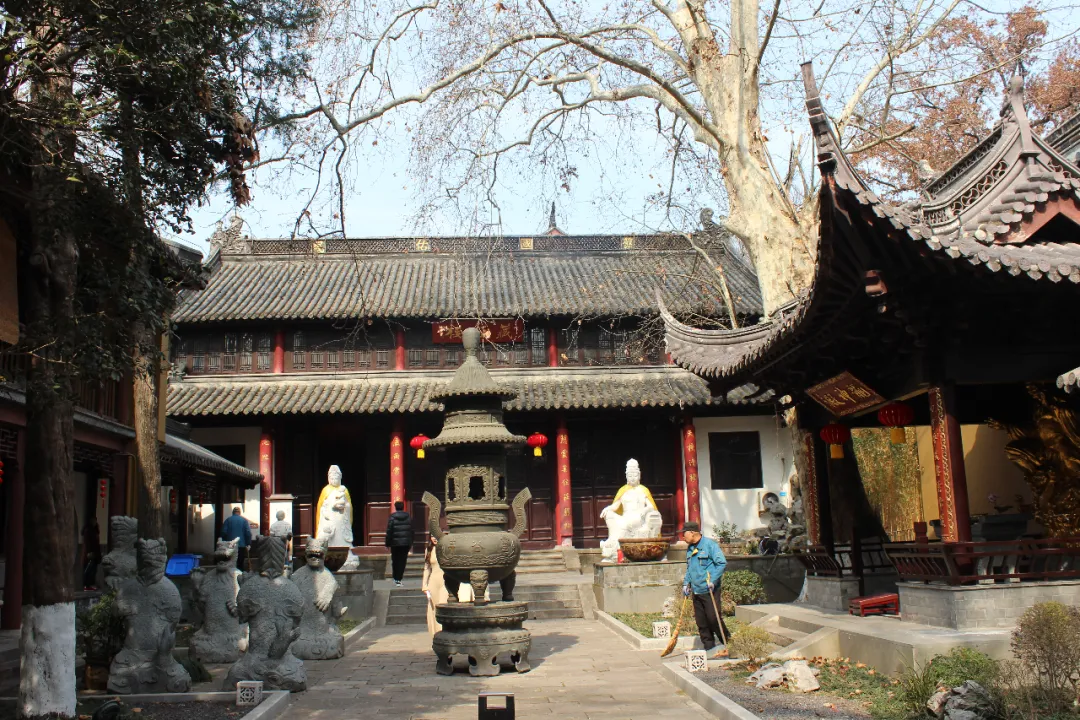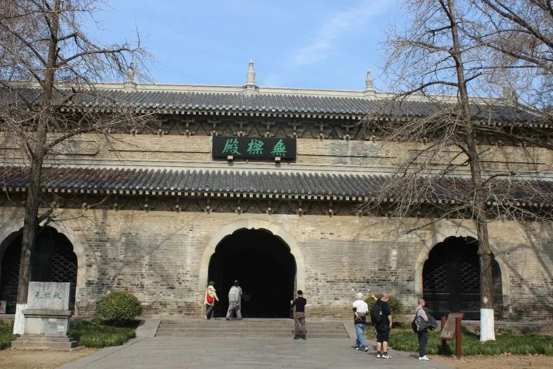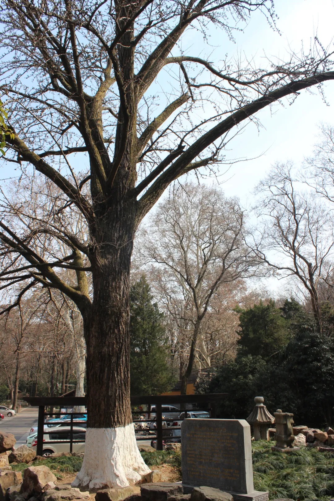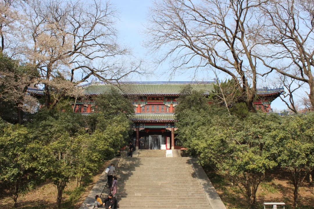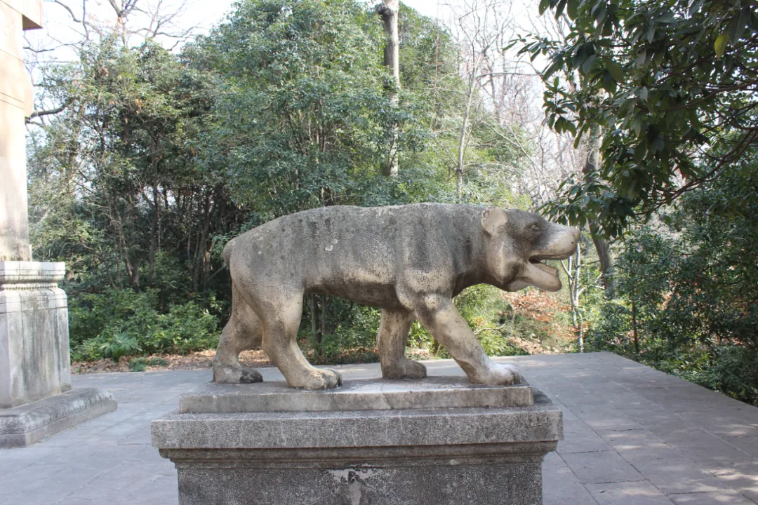 出音乐台,乘坐观光小火车东行,几分钟后就到了灵谷景区,这里是一处幽静的山谷,不像中山陵人山人海,反而显得非常寂静。灵谷寺最初为南朝梁武帝为尊崇宝志禅师兴建的"开善精舍",原址位于紫金山独龙阜玩珠峰南麓,明太祖朱元璋选定此处修建自己的陵墓明孝陵,于洪武十四年(1381年)将原寺移到现址,地形是"左群山右峻岭"之间的一片谷地,可谓山有灵气,谷有合水,故命名为"灵谷禅寺"。清康熙四十六年(1707年),康熙南巡时,临幸钟山,御赐"灵谷禅林"匾额,并赐书"天香飘广殿,山气宿空廓"对联。1928年,国民政府在灵谷寺建设国民革命军阵亡将士公墓,因此,今日之灵谷寺其实是一个巨大的陵墓,正门是一座阵亡将士牌坊,坊额刻有“大仁大义”,背面刻着“救国救民”,坊前一对汉白玉雕成的貔貅,是守陵的神兽。牌坊之后是无梁殿,为国民革命阵亡将士公墓的祭堂,里面刻有3万多名阵亡将士的名字。无梁殿后空旷的草坪,是三个阵亡将士公墓,共埋葬北伐与抗日阵亡将士一千余人。弧形墓墙之后是纪念馆,再往后就是66米高的阵亡将士纪念塔,平面八角,绿琉璃瓦,林木苍翠,庄严肃穆。原灵谷寺则迁至东侧同治六年曾国藩修建的龙神庙。黄墙青瓦、精巧典雅。寺内专设有"玄奘法师纪念堂",堂正中设13层密檐楠木塔,塔内安放着玄奘法师的部分顶骨。据文献记载,玄奘法师圆寂于西安,葬于兴教寺塔,后来因兵乱而迁葬于南京的报恩寺。1943年,日军在报恩寺遗址盗掘,得铜匣石函,内藏玄奘法师顶骨,于是分运日本及北京,抗战胜利后,顶骨辗转多处,最后回归灵谷寺。当日艳阳高照,天气晴朗,下午气温超过20度。从灵谷寺出来,我们走得冒汗,正坐林间长椅小憩,忽然风声大作,长云涌动,大风吹过树梢,木叶纷飞,林壑回响,声势惊人,俄顷天色转暗,气温骤降。或云山中毅魄有灵,不可不信也。诗以记之:森森草木护坟茔,古殿龛深难辨名。
