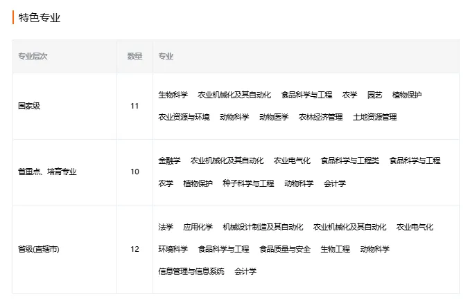 南京农业大学现有农学院、工学院、植物保护学院、资源与环境科学学院、园艺学院、动物科技学院(含无锡渔业学院)、动物医学院、食品科学技术学院、经济管理学院、公共管理学院、人文与社会发展学院、生命科学学院、理学院、信息管理学院、外国语学院、金融学院、草业学院、马克思主义学院、智慧农业学院(人工智能学院)、体育部等20个学院(部);76个本科专业、30个硕士授权一级学科、17个博士授权一级学科、21个硕士专业学位授予权、4个博士专业学位授予权和17个博士后流动站;全日制本科生19000余人,研究生13500余人;教职员工2900余人,其中:中国工程院院士4名,国家特聘专家、国家杰出青年科学基金获得者等72人次,国家级教学名师4人,全国优秀教师、模范教师、教育系统先进工作者5人,入选国家青年人才计划92人次,入选国家其他各类人才工程和人才计划150余人次,国家基金委创新研究群体2个,国家和省级教学团队7个。 南京农业大学人才培养涵盖本科生教育、研究生教育、留学生教育、继续教育及干部培训等各层次,建有“国家大学生文化素质教育基地”“国家理科基础科学研究与教学人才培养基地”“国家生命科学与技术人才培养基地”“生物科学拔尖学生培养计划2.0基地”和植物生产、动物科学类、农业生物学虚拟仿真国家级实验教学中心,是首批通过全国高校本科教学工作优秀评价的大学之一。2000年,获教育部批准建立研究生院。2014年,首批入选国家卓越农林人才培养计划。农学、种子科学与工程、植物保护、农业资源与环境、环境工程、园艺、风景园林、茶学、动物科学、水产养殖学、农林经济管理、国际经济与贸易、动物医学、食品科学与工程、食品质量与安全、生物工程、土地资源管理、行政管理、劳动与社会保障、英语、社会学、农村区域发展、旅游管理、应用化学、生物科学、生物技术、金融学、会计学、草业科学、机械设计制造及其自动化、农业机械化及其自动化、农业电气化、信息管理与信息系统、计算机科学与技术等34个专业获批国家级一流本科专业建设点,环境科学、生态学、园林、设施农业科学与工程、中药学、工商管理、市场营销、电子商务、动物药学、人文地理与城乡规划、人力资源管理、法学、投资学等13个专业获批省级一流本科专业建设点。在百余年的办学历程中,学校秉承以“诚朴勤仁”为核心的南农精神,培养具有“世界眼光、中国情怀、南农品质”的拔尖创新型和复合应用型人才,先后造就包括66位院士在内的30余万名优秀人才。