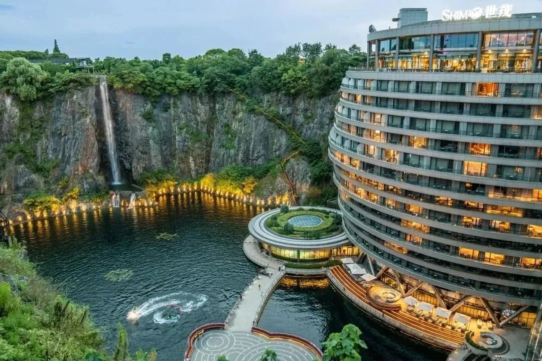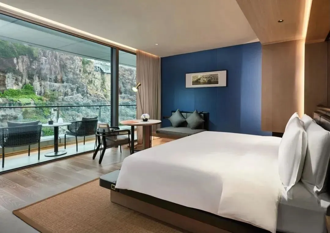 在房间就可一览开阔的湖面和壮丽的瀑布