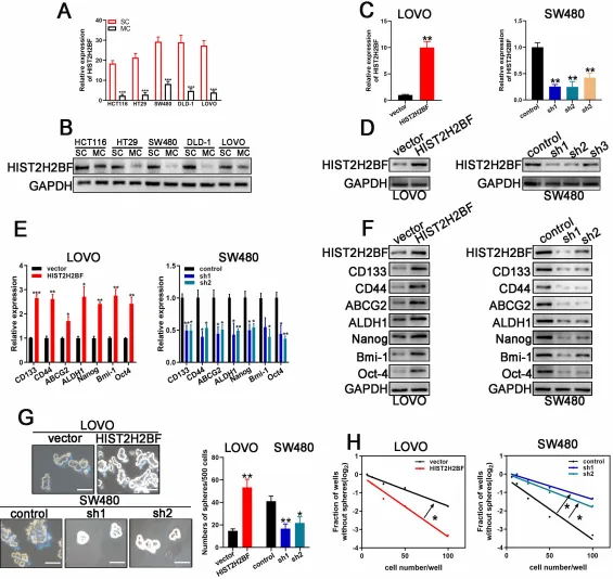 图2:HIST2H2BF过表达显著增强结直肠癌细胞的干细胞特性