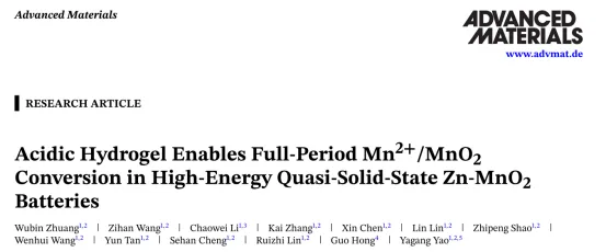 酸性水凝胶实现高能准固态锌锰电池全周期Mn2+/MnO2转化