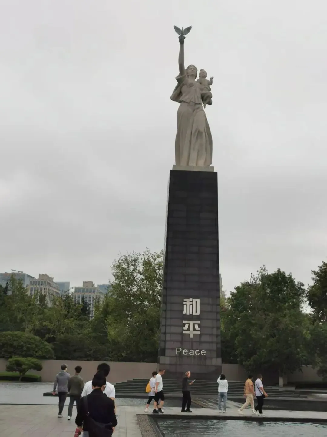 和平雕塑位于侵华日军南京大屠杀遇难同胞纪念馆和平公园内,该馆于2005年12月13日奠基,2007年12月13日竣工,占地7.32公顷,建筑面积2.31万平方米。空间布局寓意“铸剑为犁”,平面设计象征“和平之舟”,包含新馆、老馆及万人坑遗址等功能区域。和平公园内的主题雕塑“和平女神”基座高18米,总高30米以纪念南京大屠杀30万遇难同胞,主体由汉白玉雕刻的母亲怀抱婴儿、手托和平鸽组成,正面设9级台阶象征持久和平。雕塑由鲁迅美术学院雕塑系前系主任孙家彬设计,其代表作包括北京毛主席纪念堂《毛泽东主席》汉白玉像等。相关文创产品融入和平鸽、紫金草及雕塑轮廓等元素,通过亚克力冰箱贴、明信片等载体传递和平理念。
