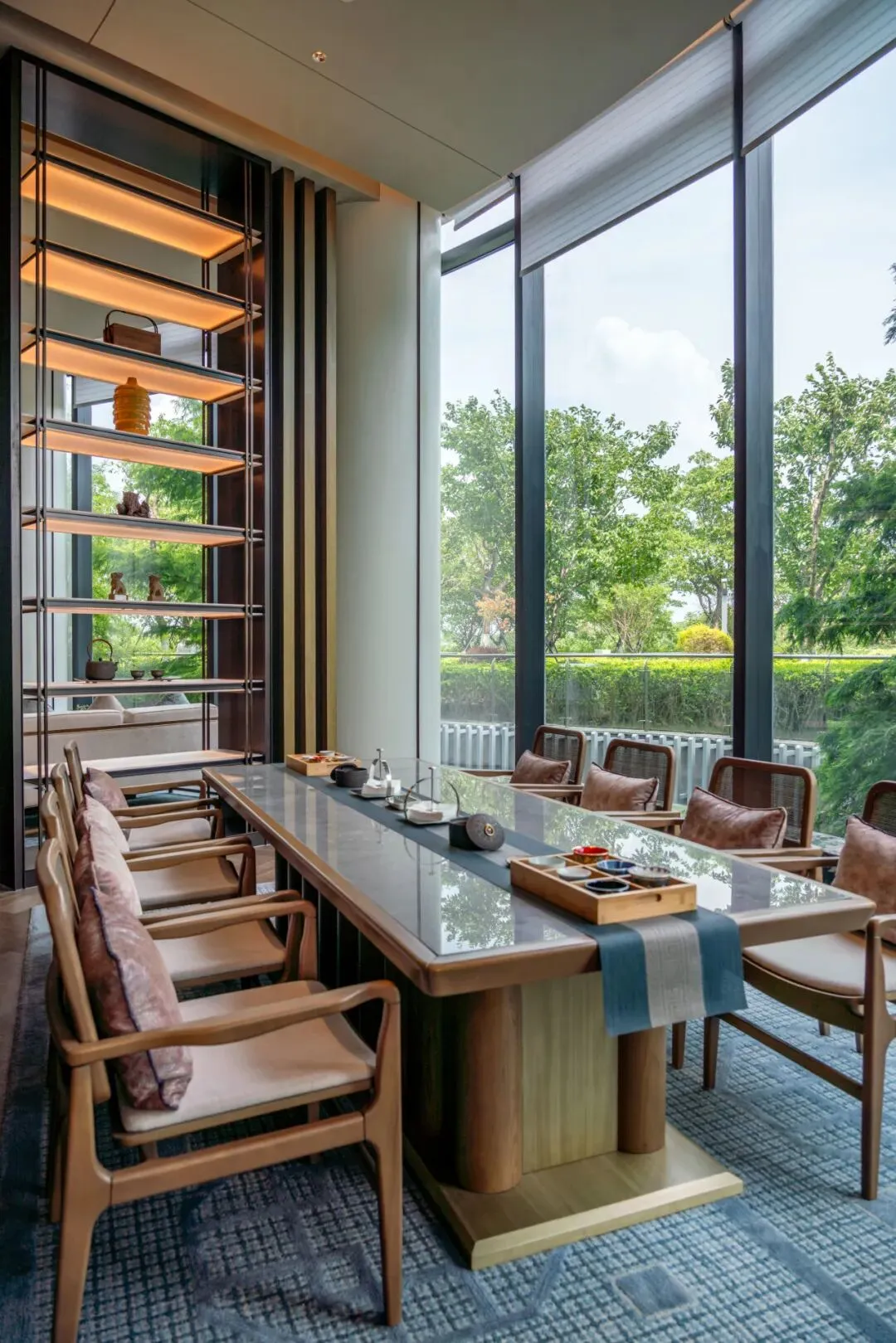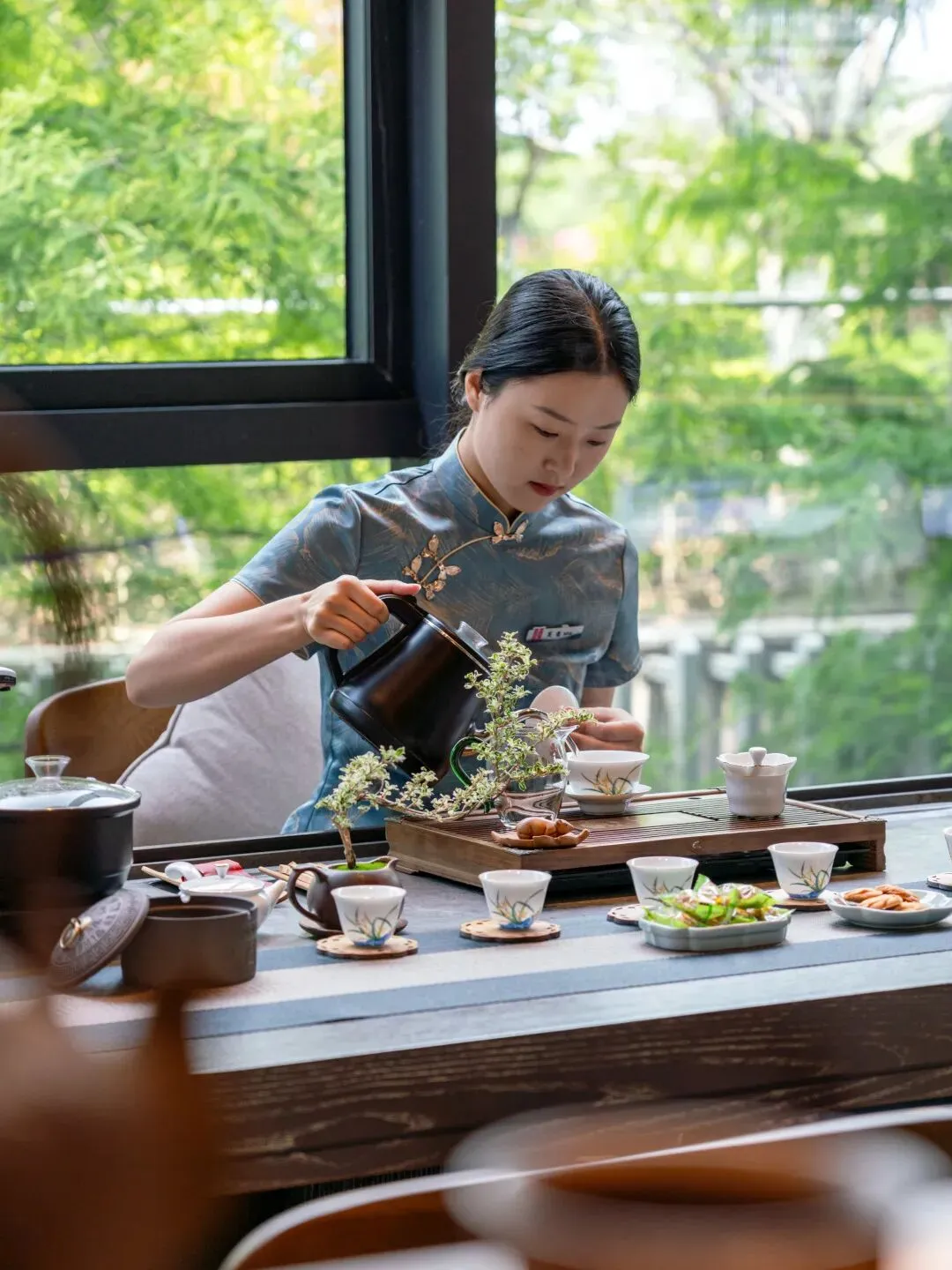 临江而坐,茶香入怀,窗外是浩荡江景,室内是清宁茶席,不必远走山野,便能在城市之中,寻得片刻自在。