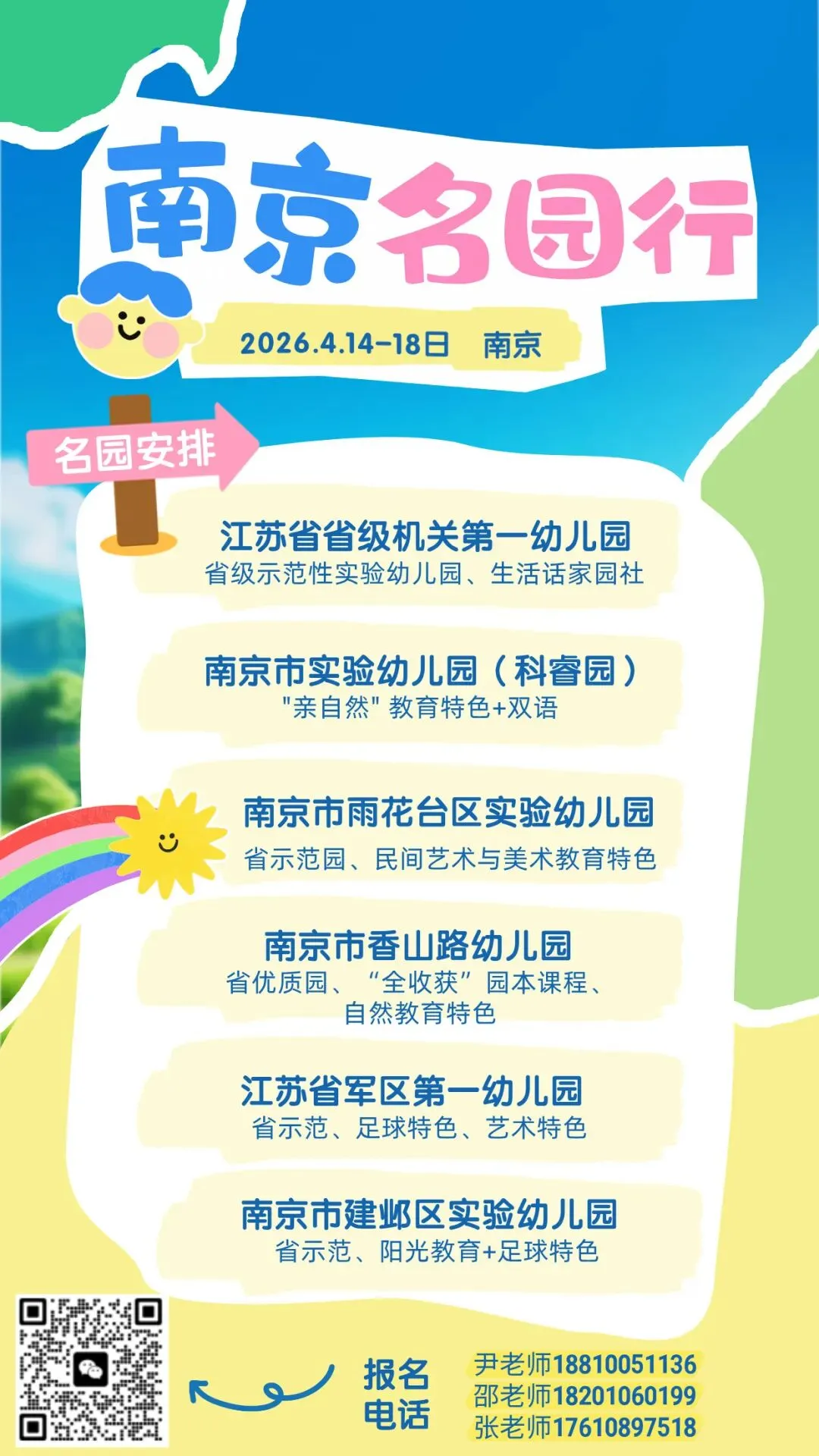 🔥南京——六朝古都、世界文学之都,更是中国现代学前教育的摇篮!2026年4月14-18日,“观环境、探课程、品文化”南京名园深度访学研修班,带您走进江苏省省级机关第一幼儿园、南京市建邺区实验幼儿园、江苏省军区第一幼儿园、南京市雨花台区实验幼儿园等6所名园,沉浸式体验南京各具特色的名园风采!