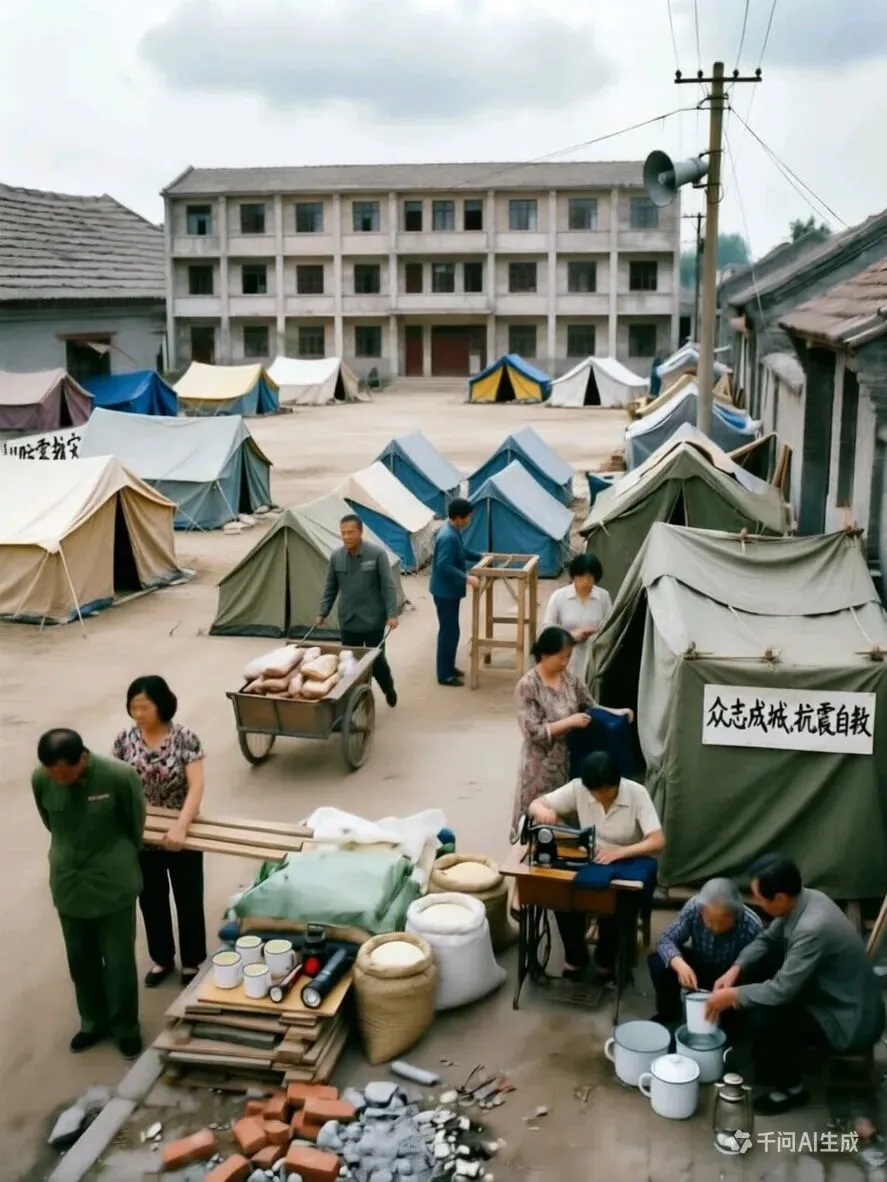 许多人不敢在屋里睡觉,纷纷将床铺搬到大街小巷等空旷地带。随后,全城掀起了搭建防震棚的风潮,市民们抢购塑料布、帆布、竹木等材料,在自家屋前屋后、街头巷尾搭建起密密麻麻的防震棚。