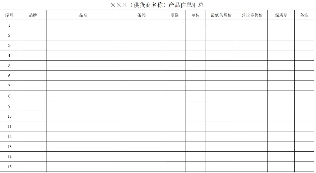 4.价格要求:供货商提供的商品售价须低于或等于本地同类大型超市同类商品均价,且不得高于市场指导价。需提供详细的商品报价单(含品名、规格、单价、供货量、配送价等),报价为含税价(含增值税等所有税费),供货周期内无特殊情况不得随意涨价。若市场价格下调,供货商需同步降低供货价格。