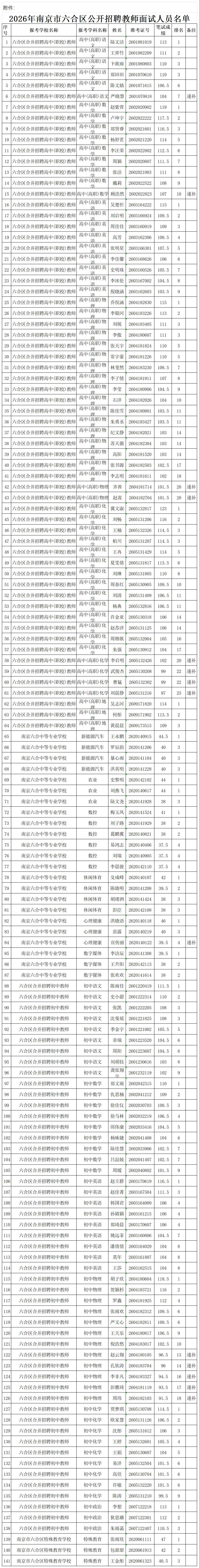 附件:2026年南京市六合区公开招聘教师面试人员名单.xlsx