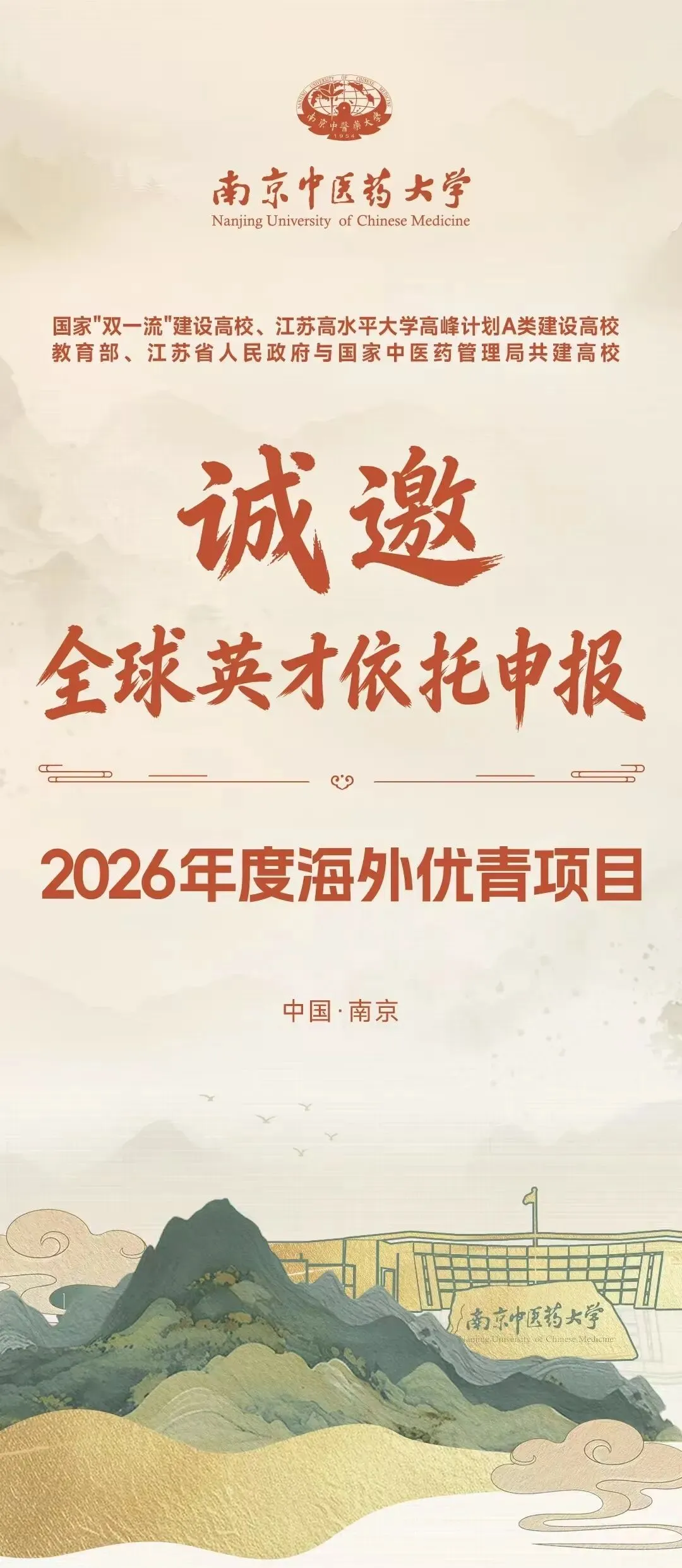 >南京中医药大学诚邀全球英才依托申报2026年度海外优青项目