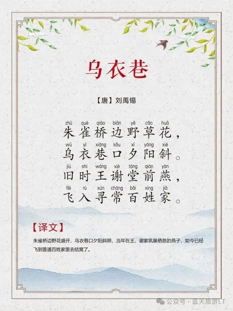 “朱雀桥边野草花,乌衣巷口夕阳斜。”