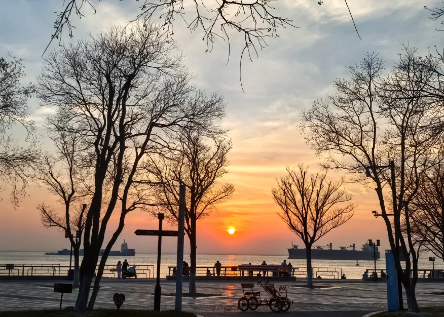 潮水起落,吹散了烟火;渔船归来,拖着暮色。城市在呼吸。