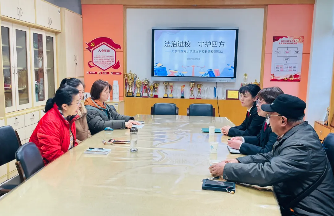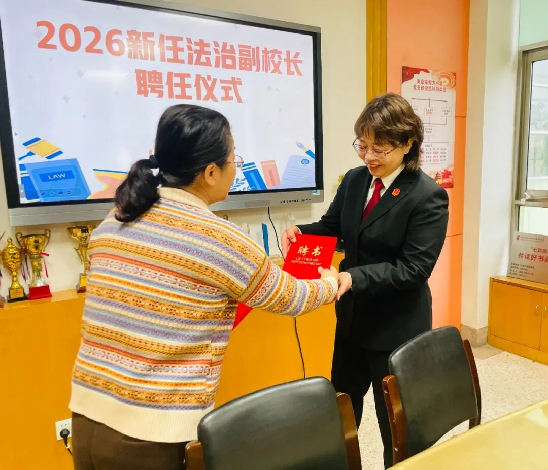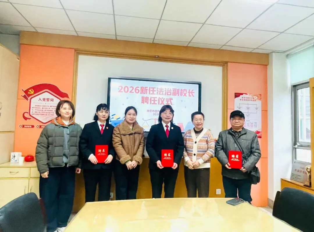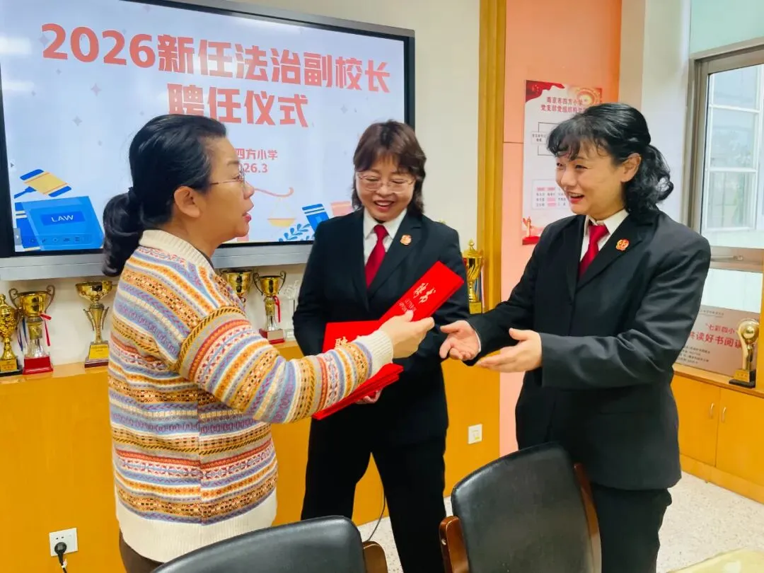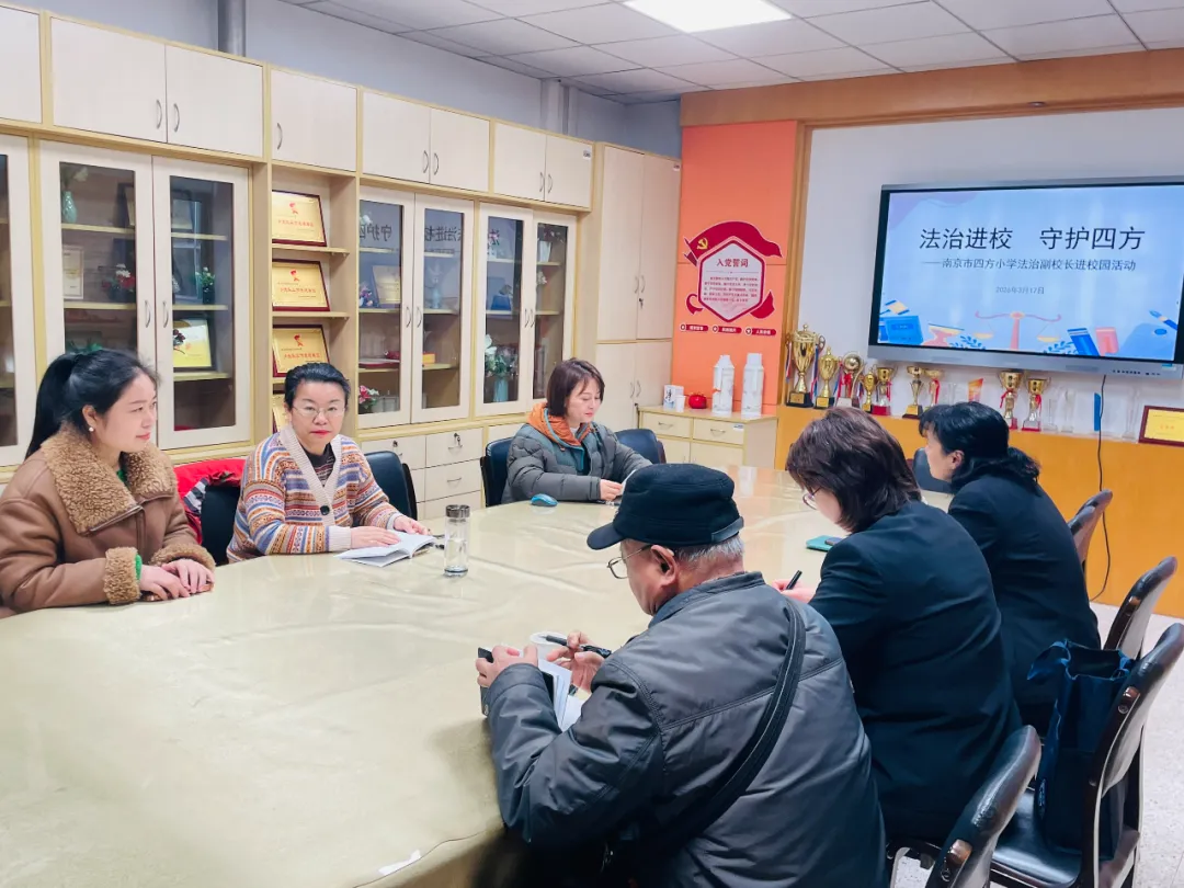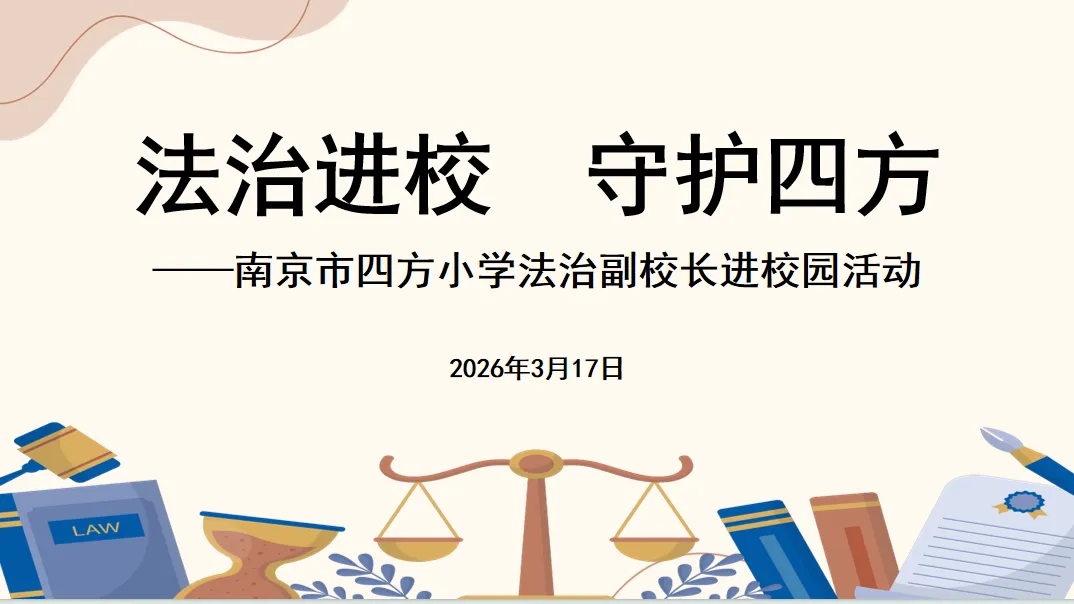 为进一步推进校园法治建设,增强师生法治意识,筑牢平安和谐校园根基,2026年3月17日,南京市四方小学法治副校长“1+N”团队走进校园,开展系列法治护航活动。通过“一次实地走访、一场座谈交流、一纸聘书聘任、一堂普法课堂”的“四个一”举措,为学生健康成长撑起法治“保护伞”,为校园安全筑牢坚实屏障。