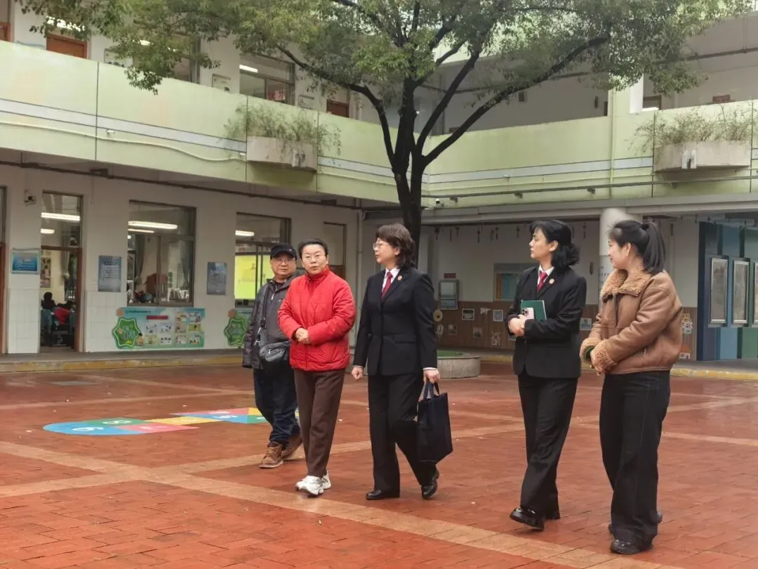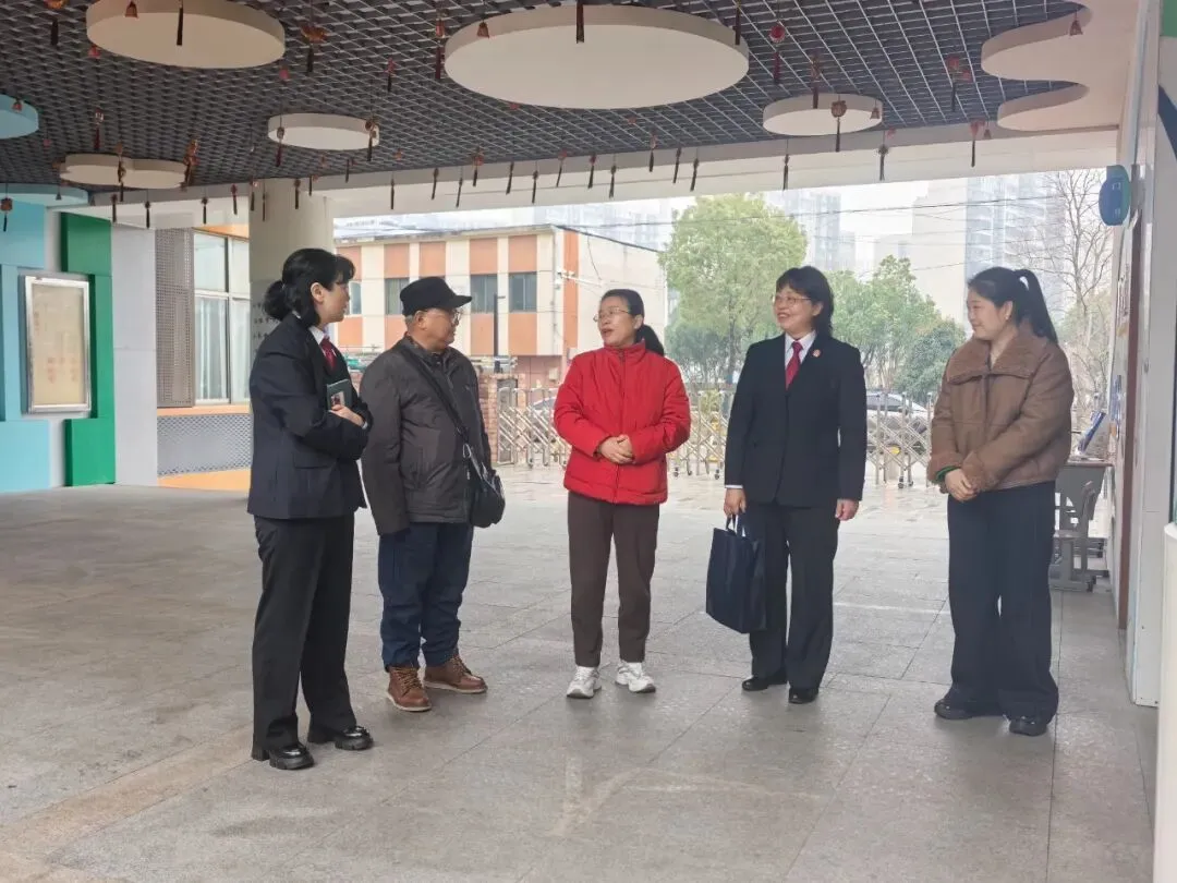 活动伊始,秦淮区法院副院长曹丽、民二庭庭长褚爱芳及法治副校长“1+N”团队成员,在学校党支部书记兼校长喻健、副校长李云及校中心组成员的陪同下,深入校园开展实地走访。团队先后查看了校园环境、门卫监控、教学区域、学生食堂等重点场所,详细了解校园安全管理、后勤保障、卫生防疫等工作落实情况,对我校整洁有序的校园环境、规范细致的管理工作给予充分肯定。
