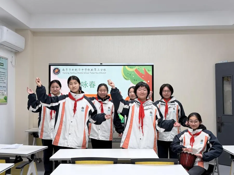 校园是文明传播的阵地,也是青春绽放的舞台。毛雨轩、冯羽霏、李尹瑗、蔡玥文、常逸辰、葛欣瑶、陈梓轩七位同学带来歌曲《咏春》表演,婉转的歌声透过广播传递到每一间教室,真挚的演绎为本次室内晨会增添了别样的青春风采。