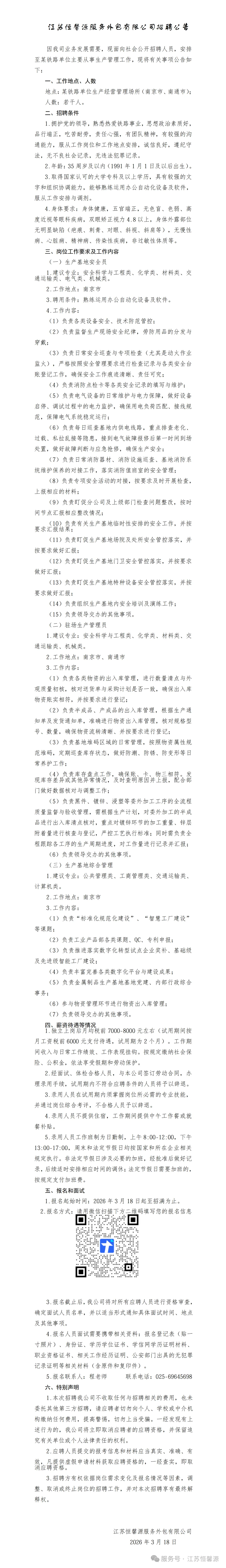 免责声明:非人力资源公司,非中介,非招聘机构。我们只是信息的搬运工,免费为徐州老乡提供服务。