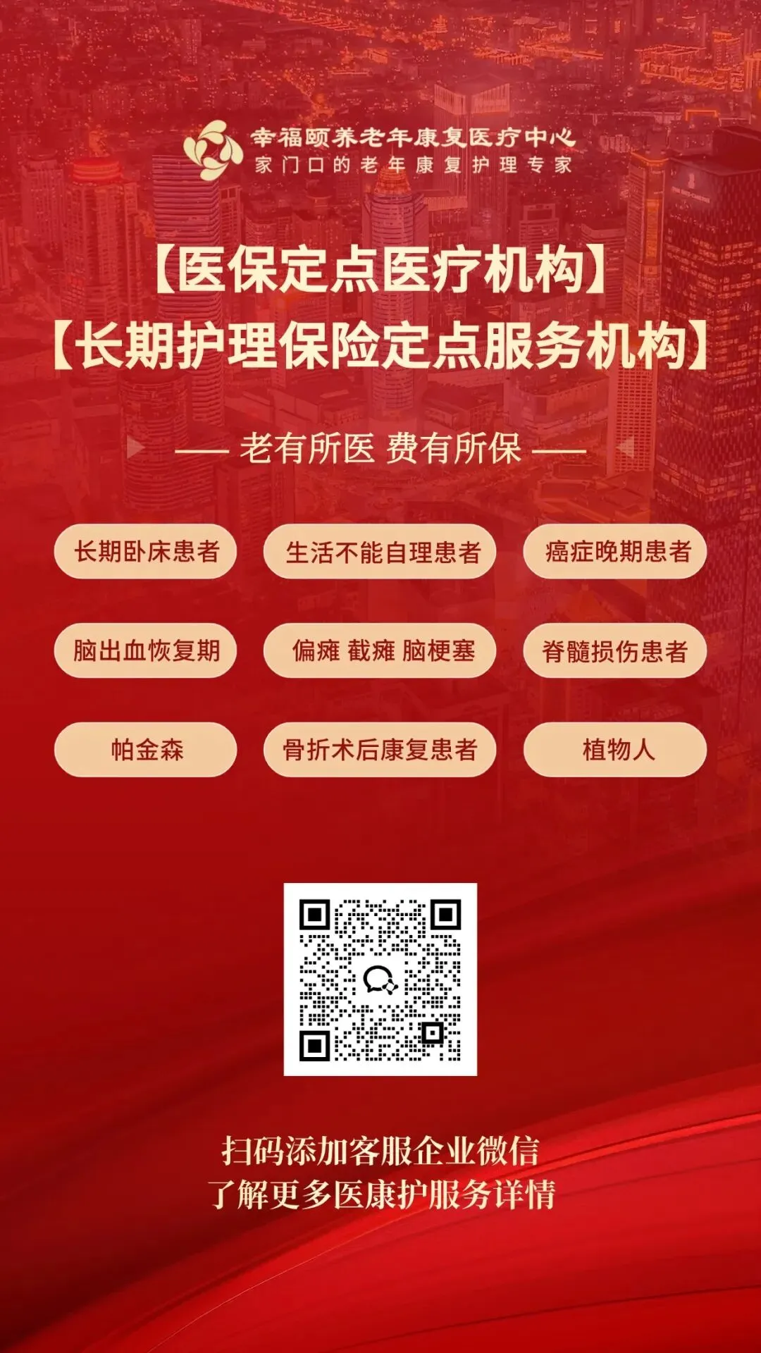 中心秉持“有爱心、时刻用心、做有温度的服务”理念,做老百姓“家门口的老年康复护理专家”。针对老年患者多病共存、康复周期长的特点,制定个性化康复方案,并融入“医康护”一体化服务模式,帮助更多老年人回归家庭与社会。